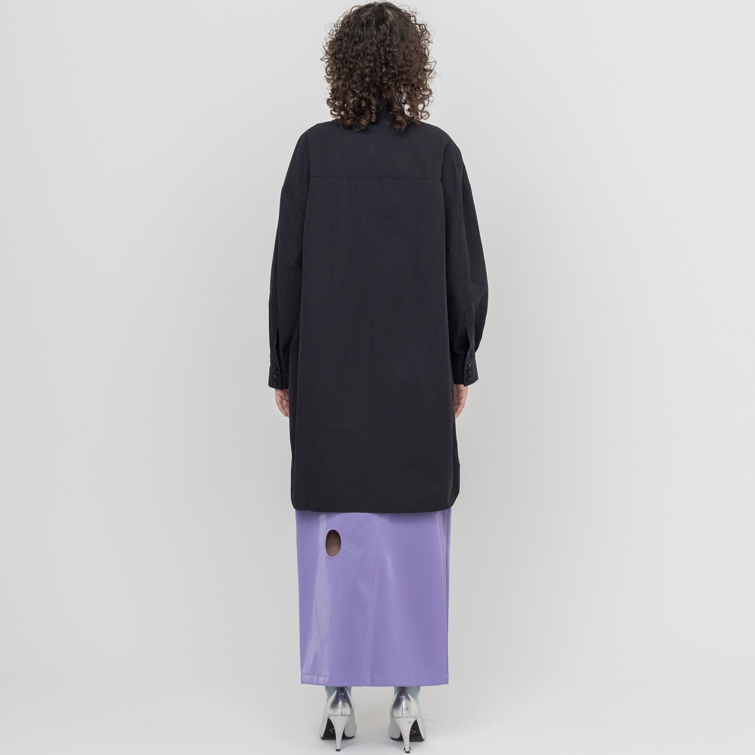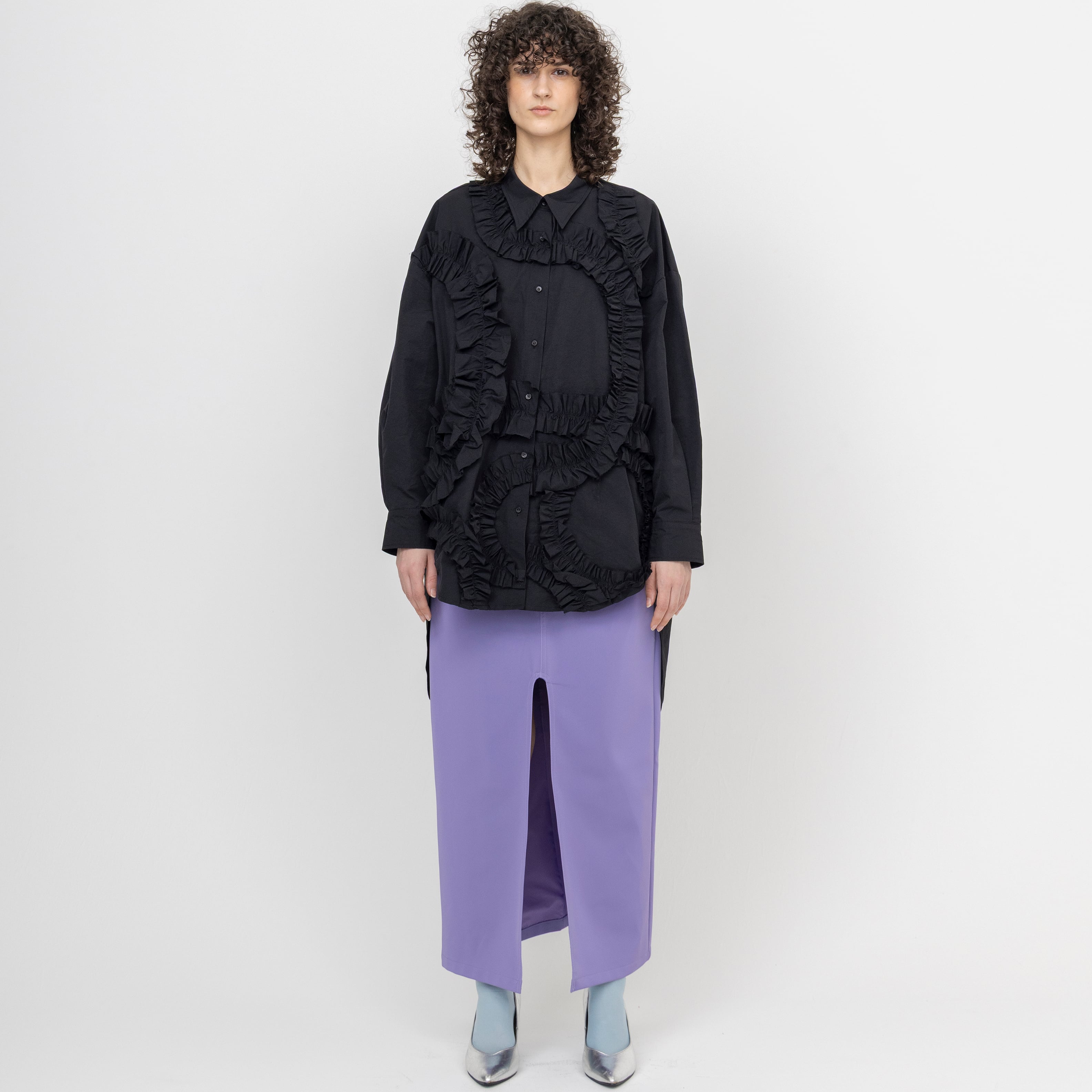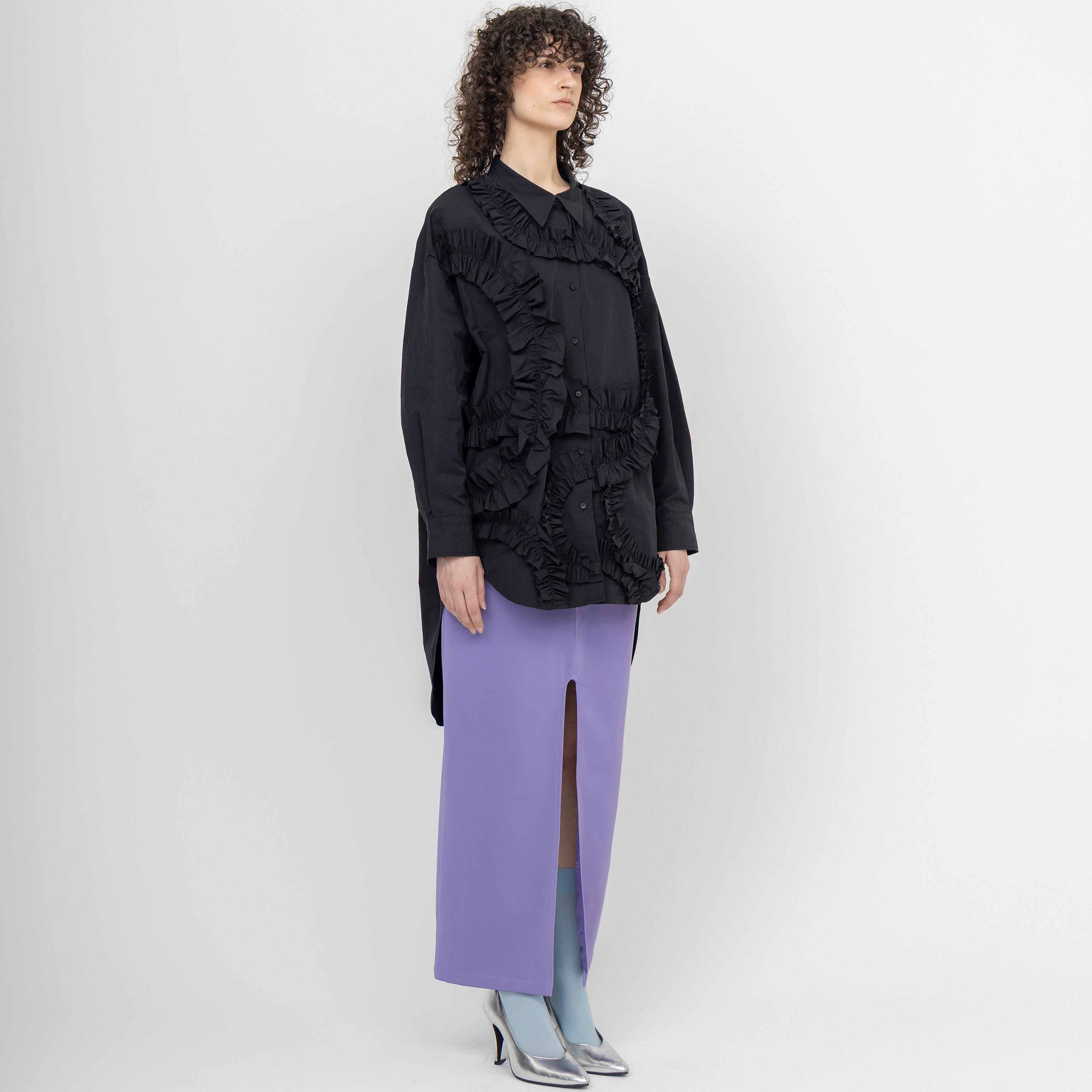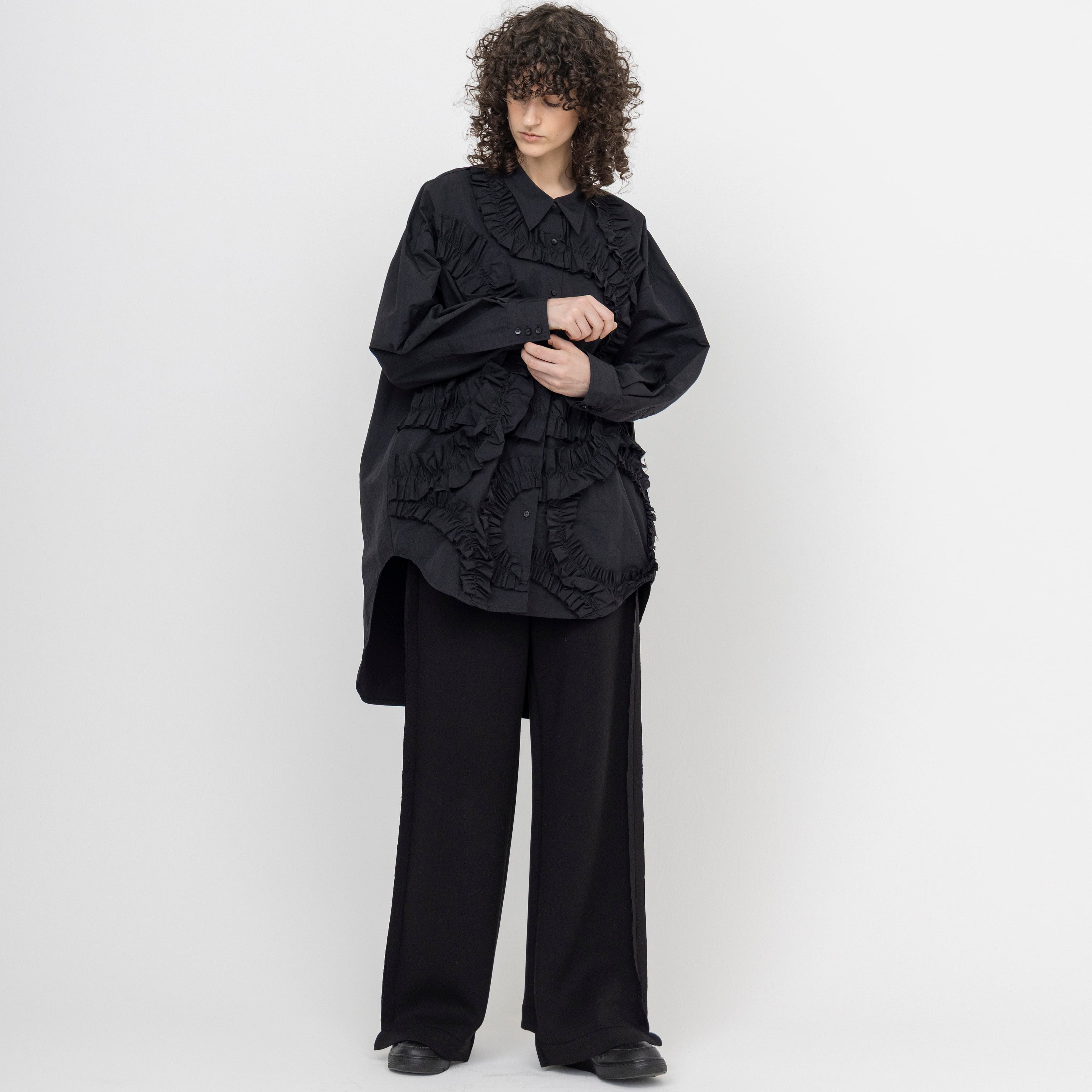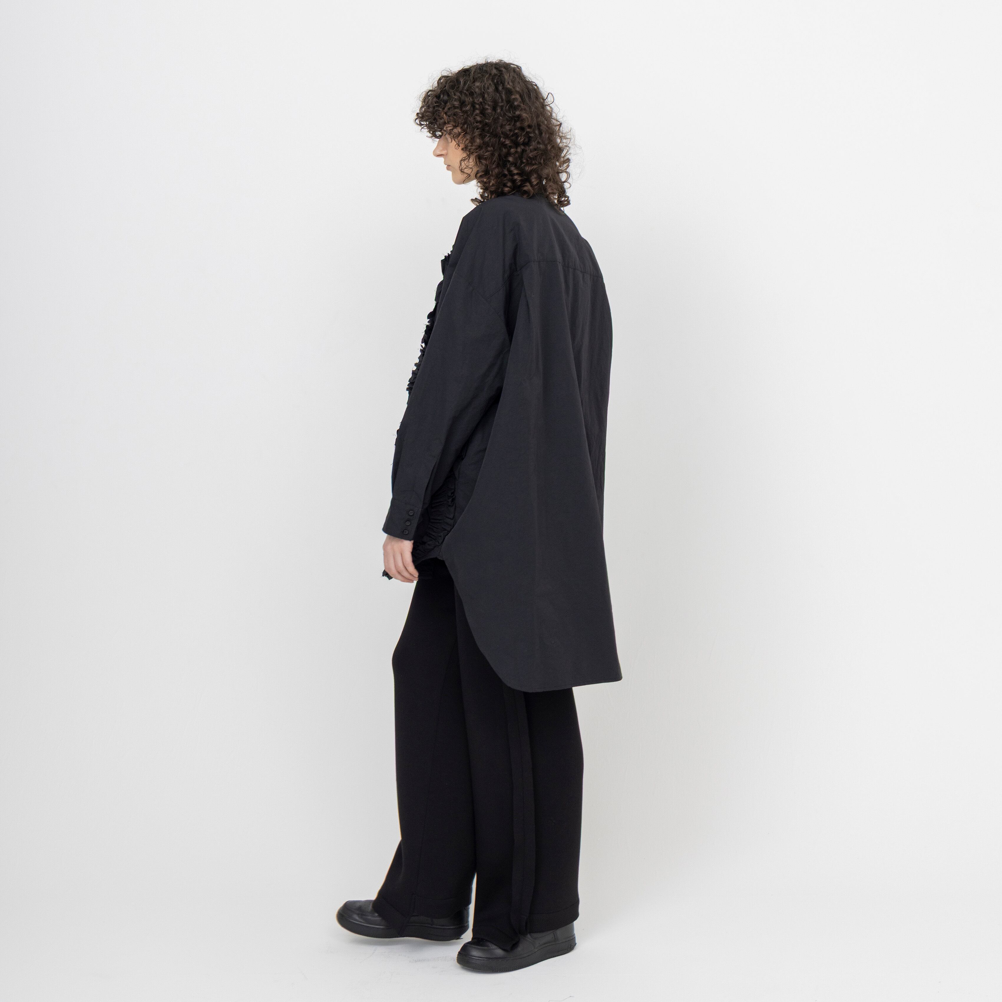 切りっぱなしのフリルを大胆にあしらった紙のような質感のオーバーシャツ。