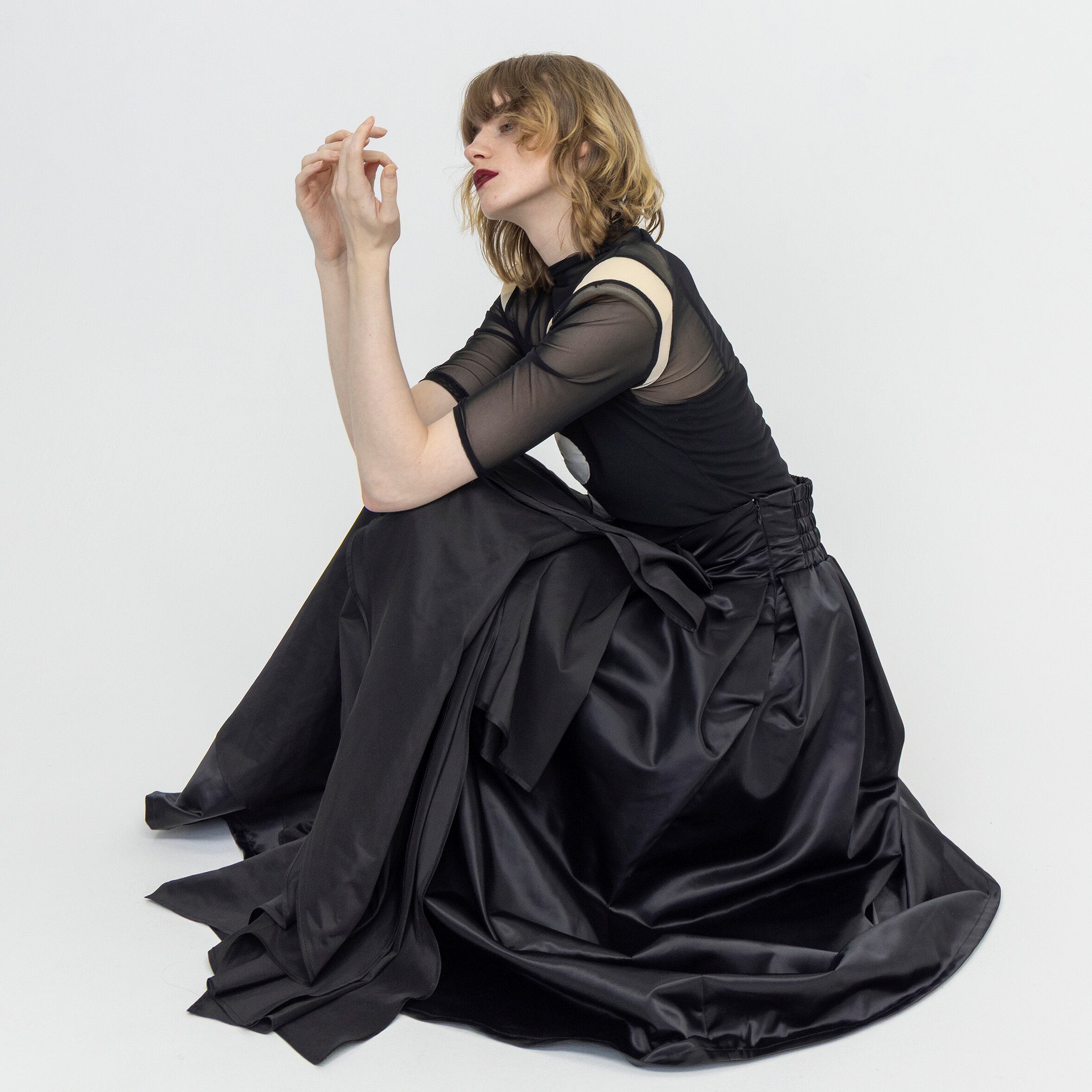女性らしいシアー素材にショルダーパッドとスポーティな印象のナンバーディテールを落とし込み、絶妙なアンバランス感を演出。