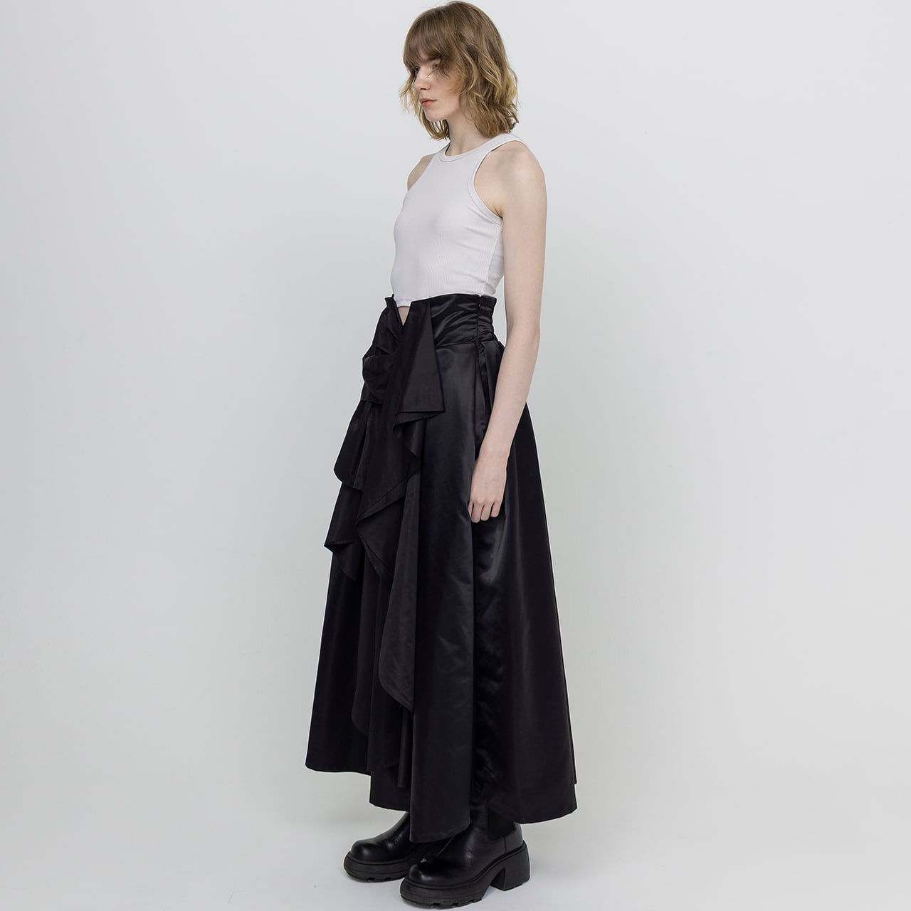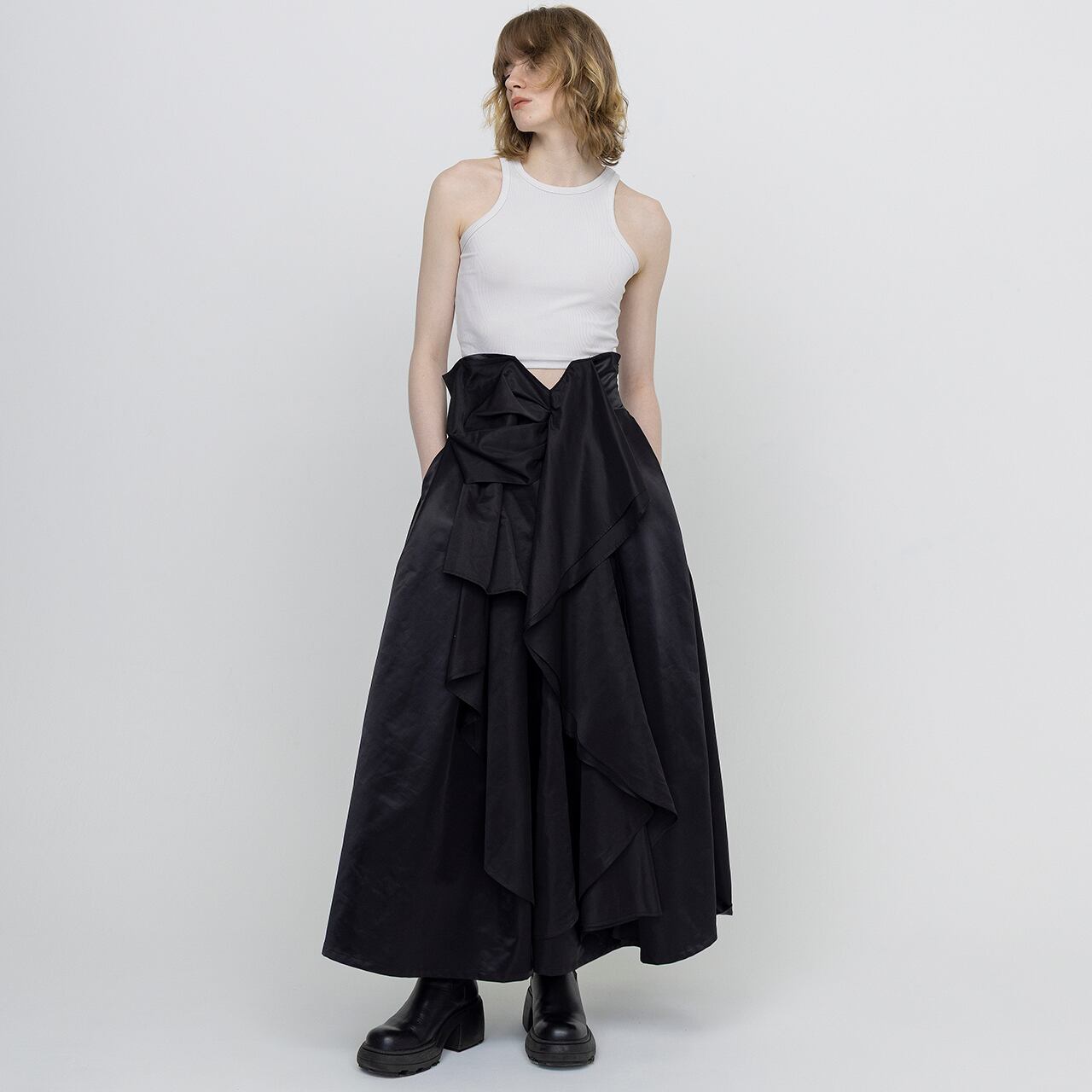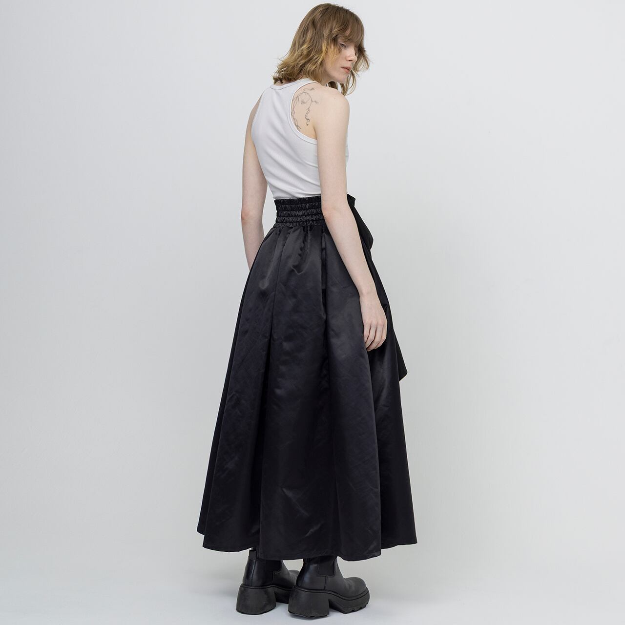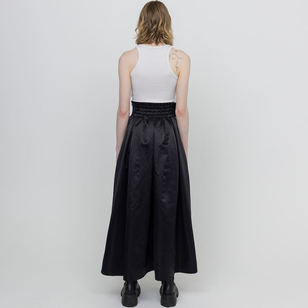 絶妙な光沢感とマキシ丈でモードな雰囲気を演出。