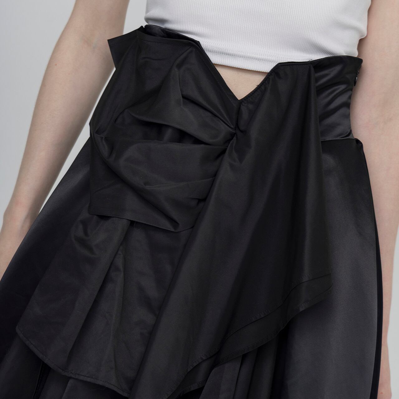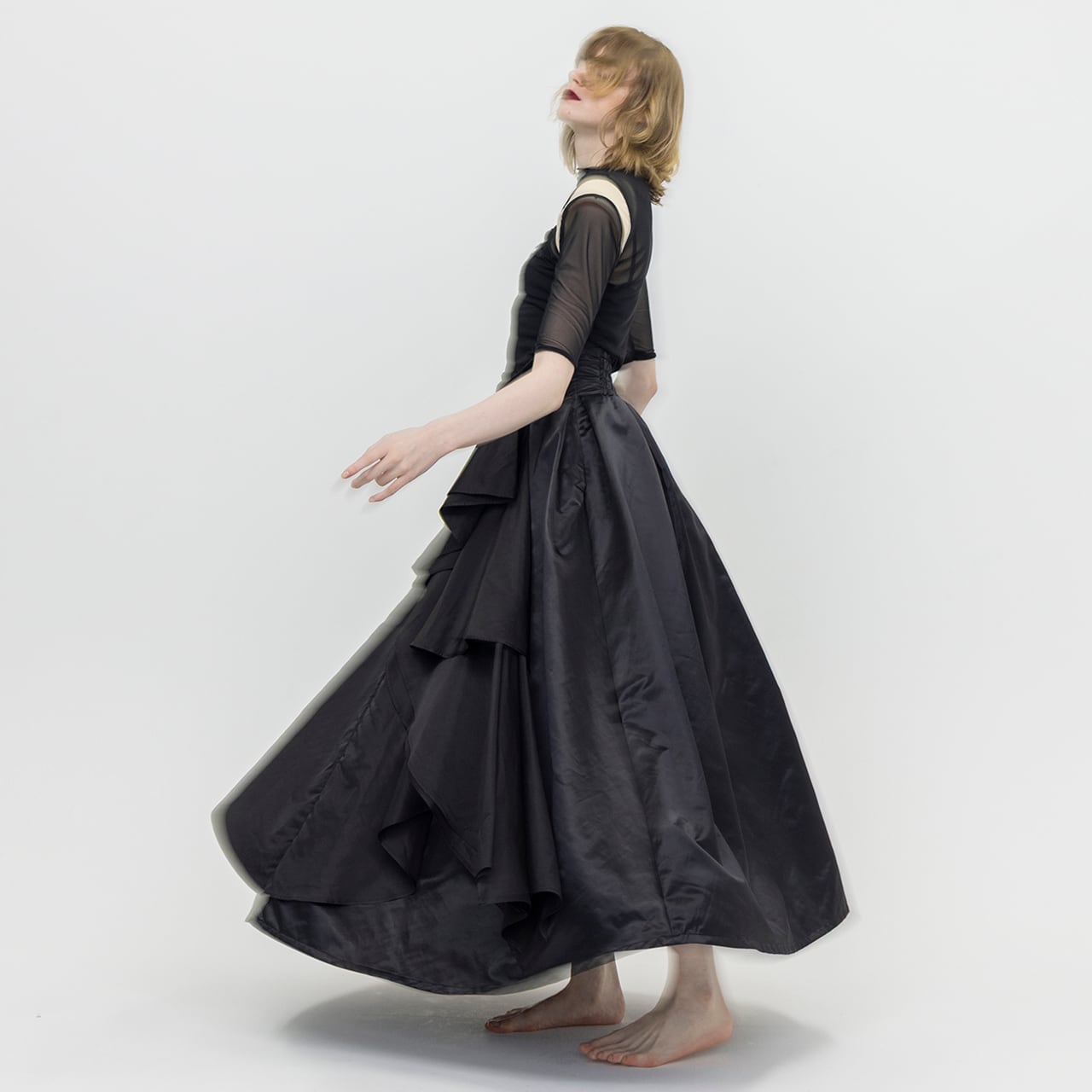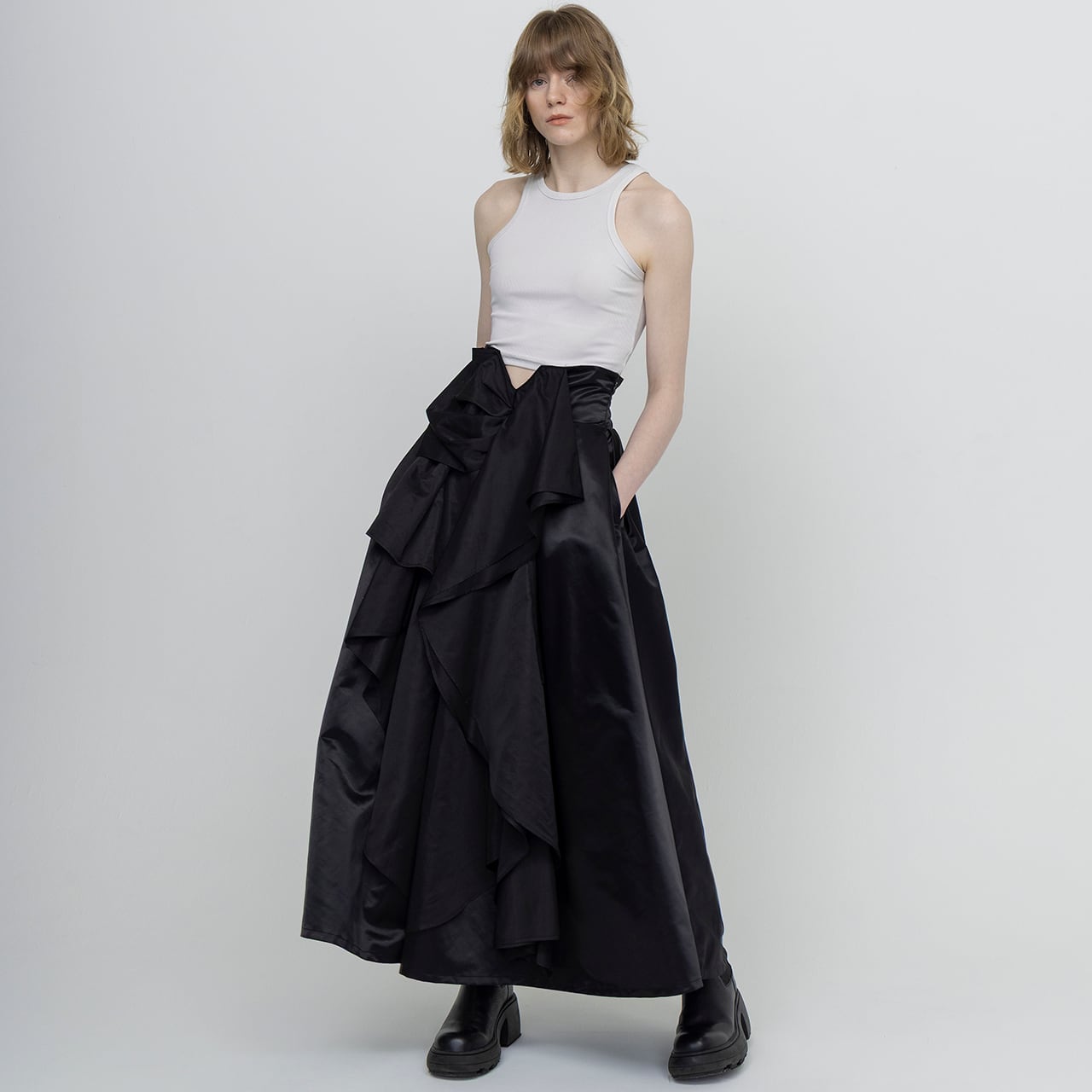 絶妙な光沢感とマキシ丈でモードな雰囲気を演出。