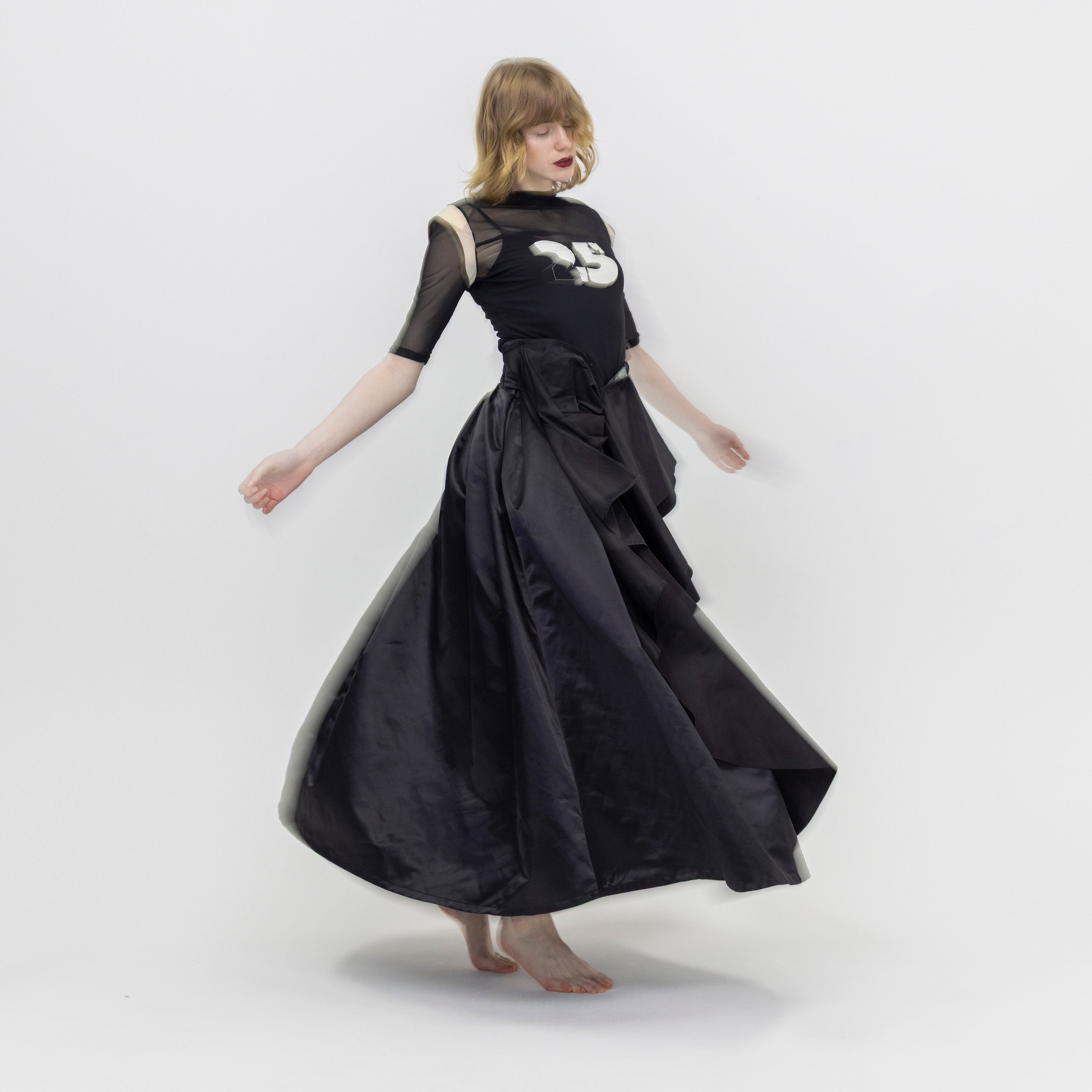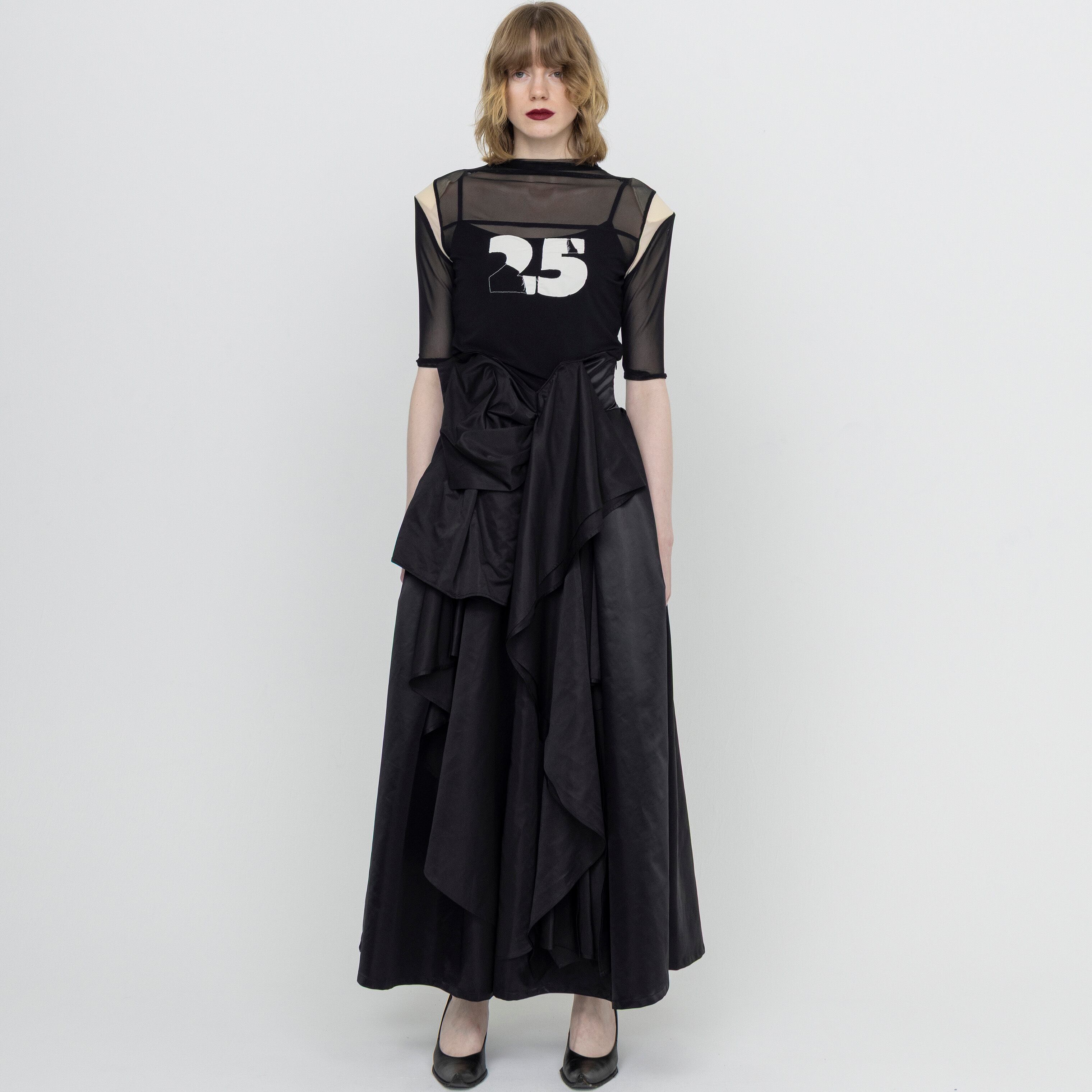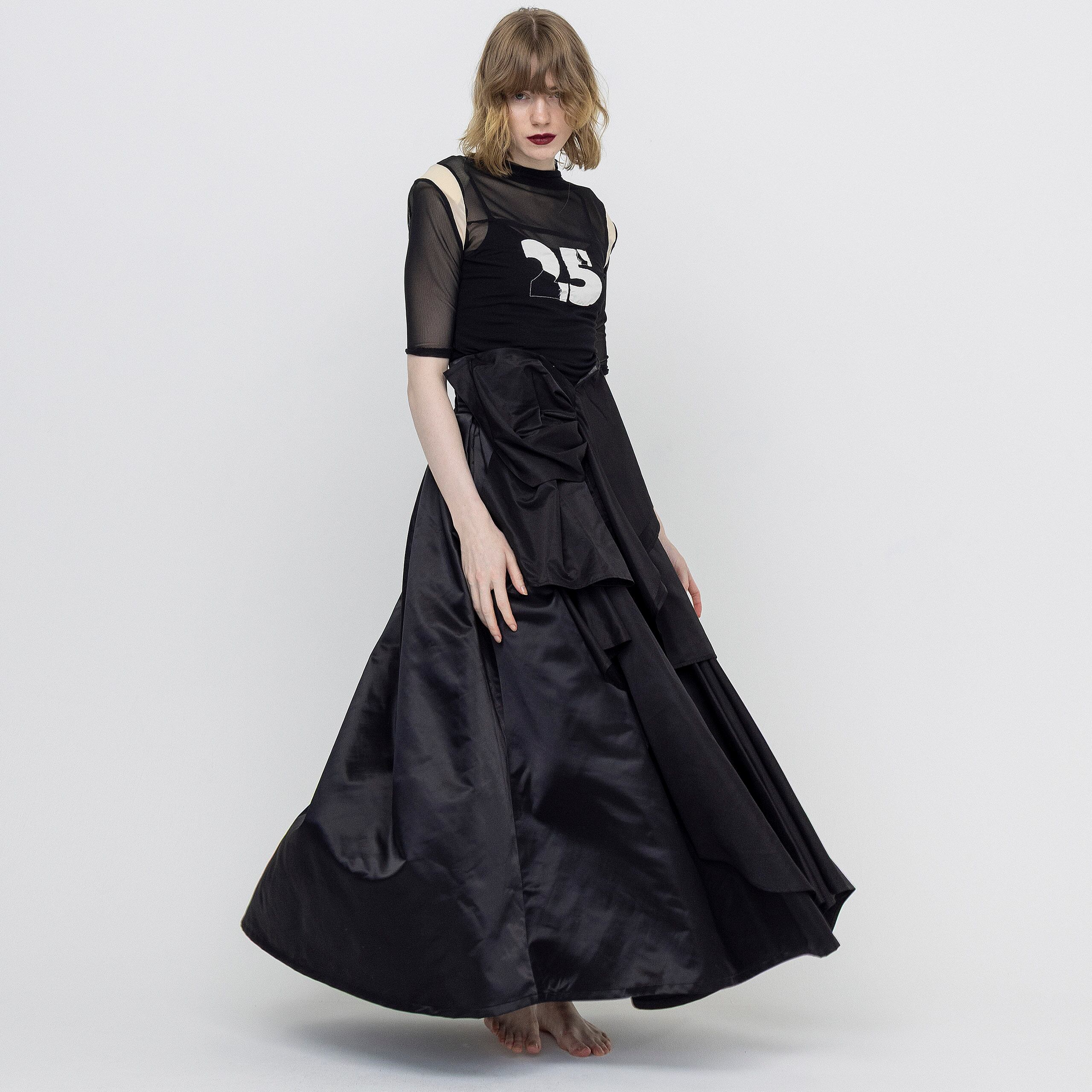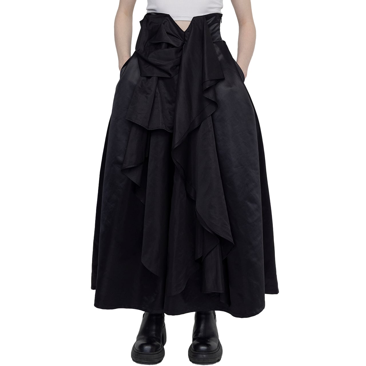 絶妙な光沢感とマキシ丈でモードな雰囲気を演出。