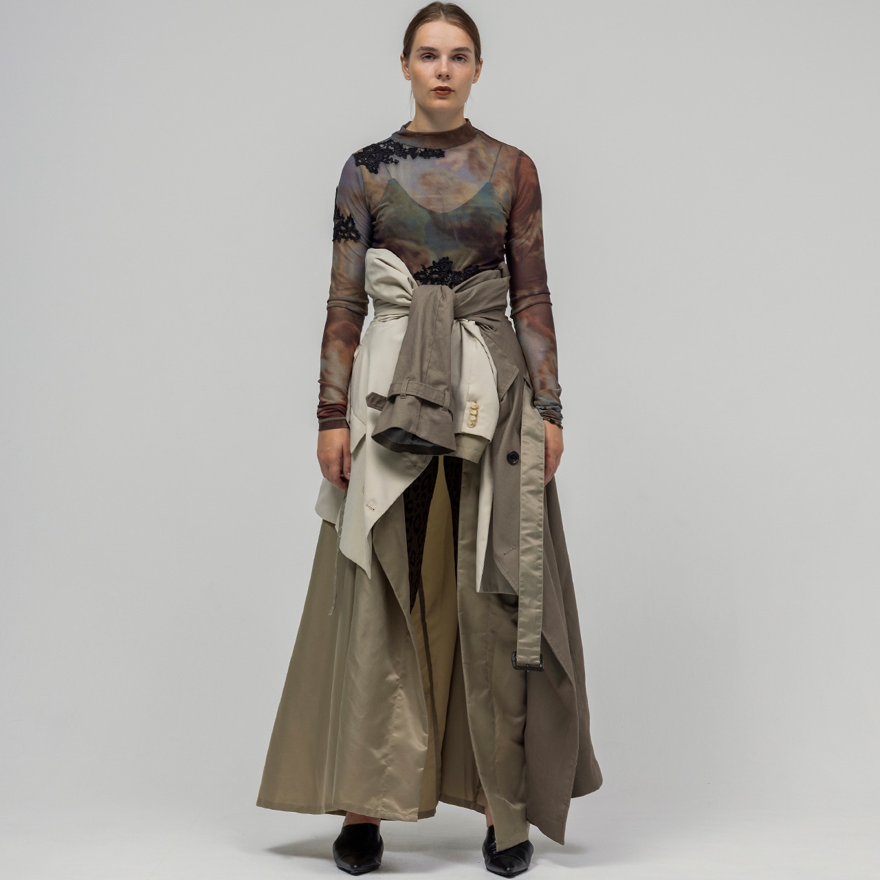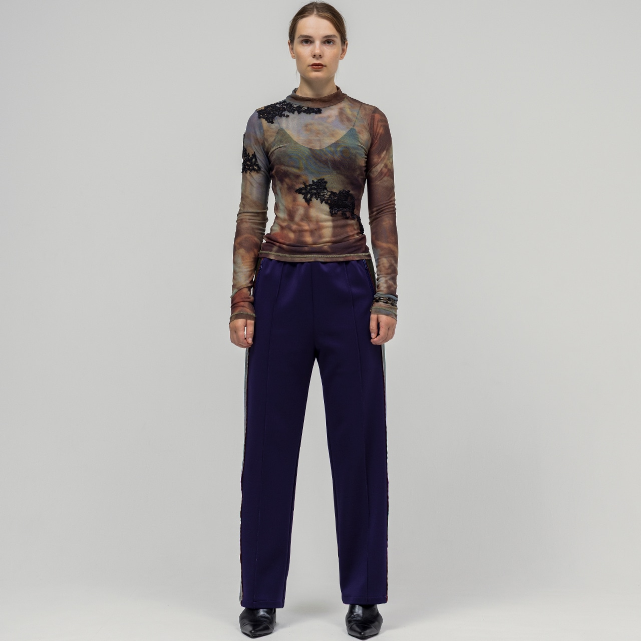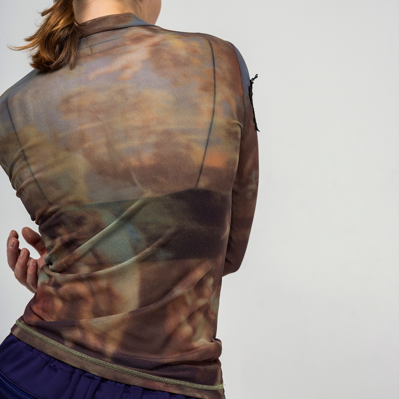 伸縮性のあるシアー素材を使用し、動きやすさと美しいシルエットを両立。