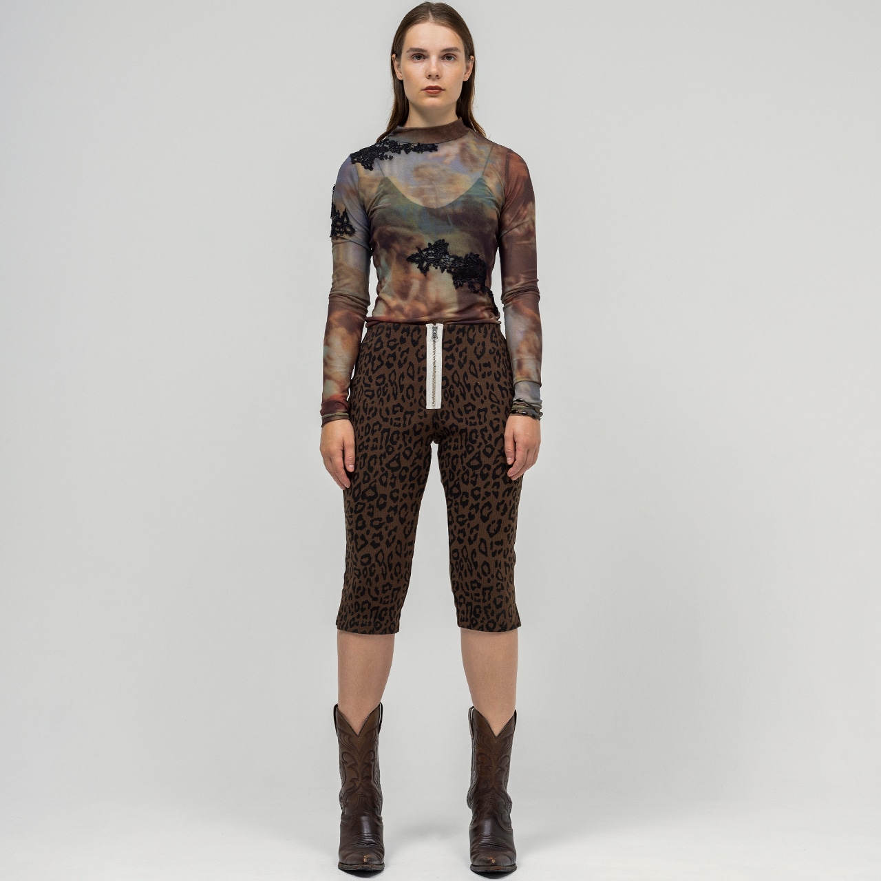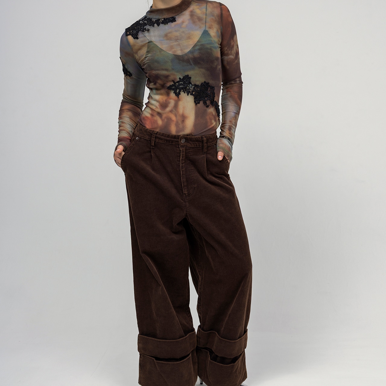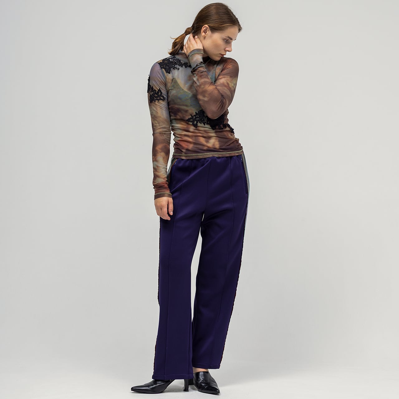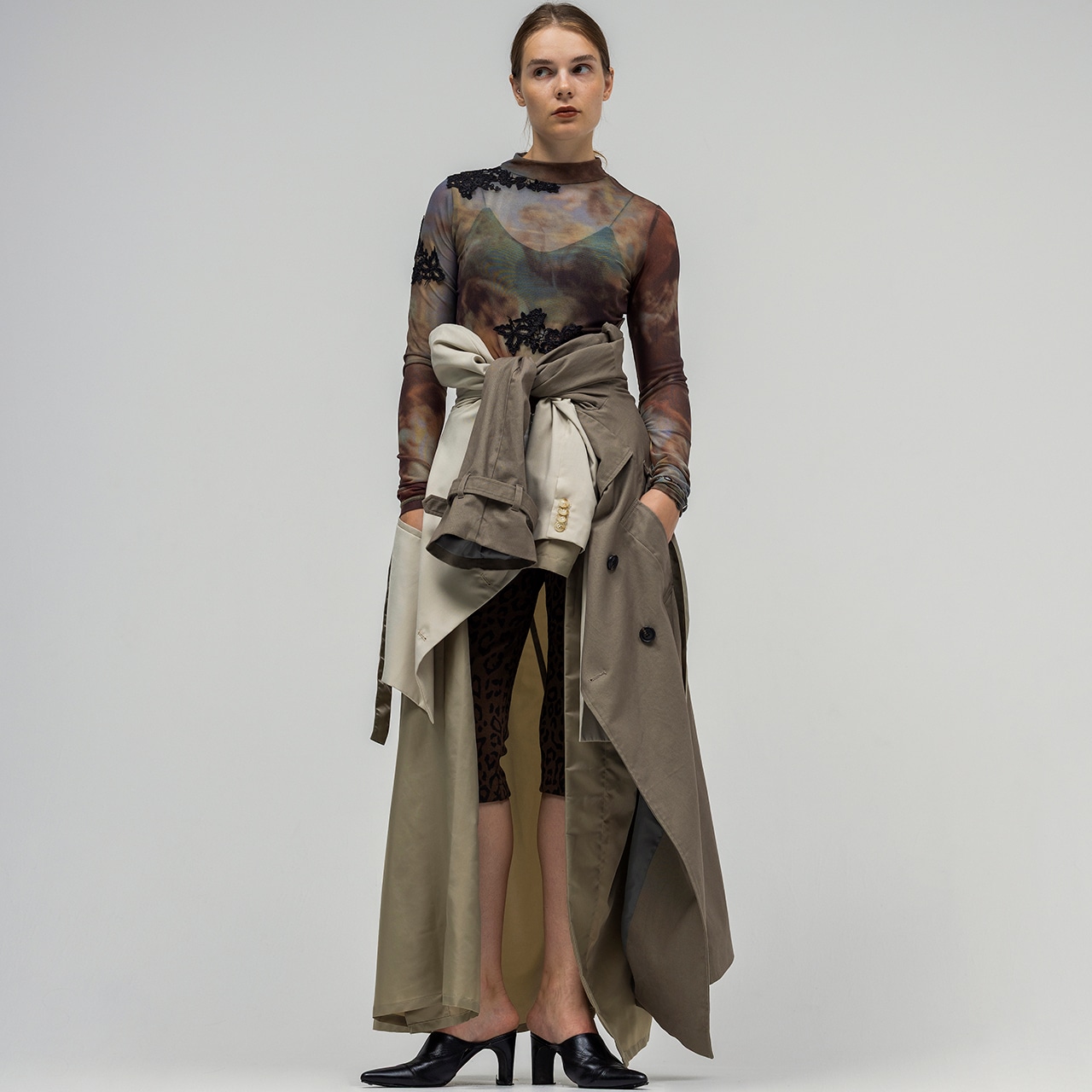 伸縮性のあるシアー素材を使用し、動きやすさと美しいシルエットを両立。