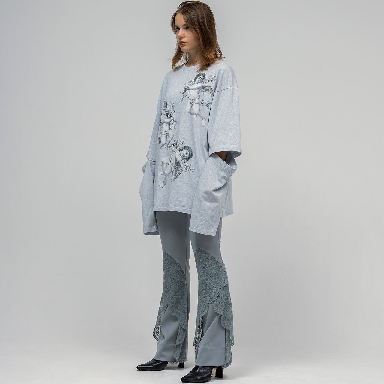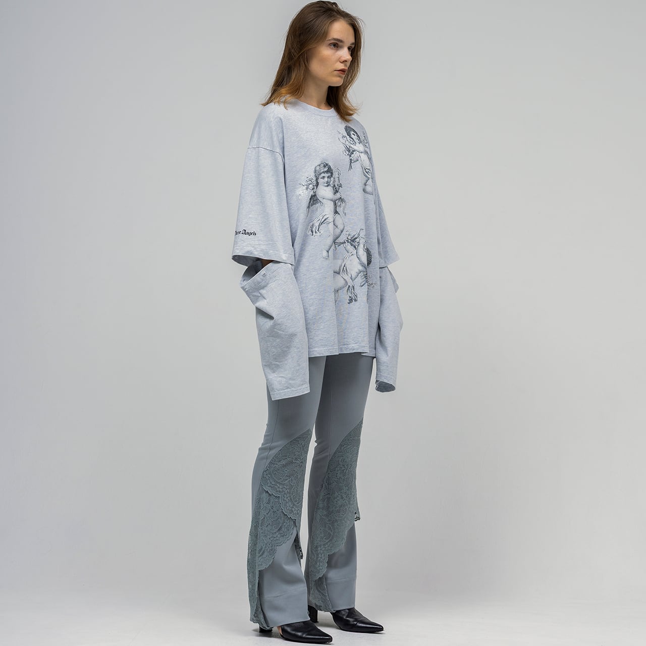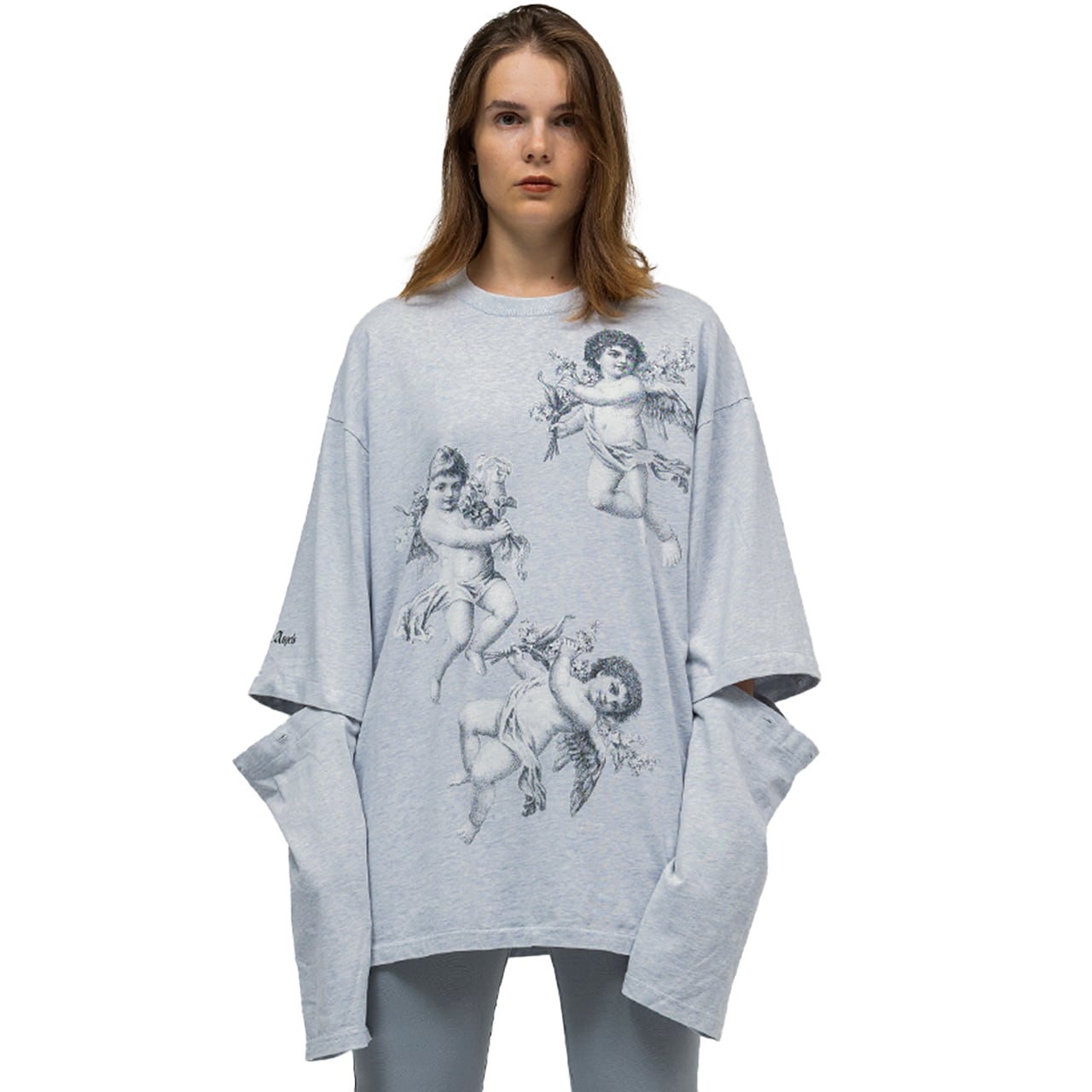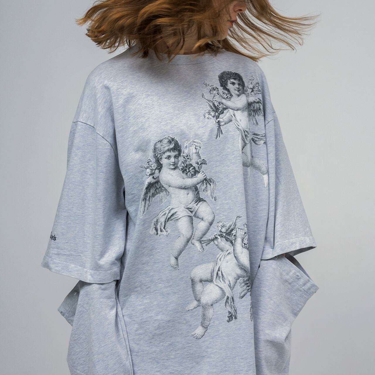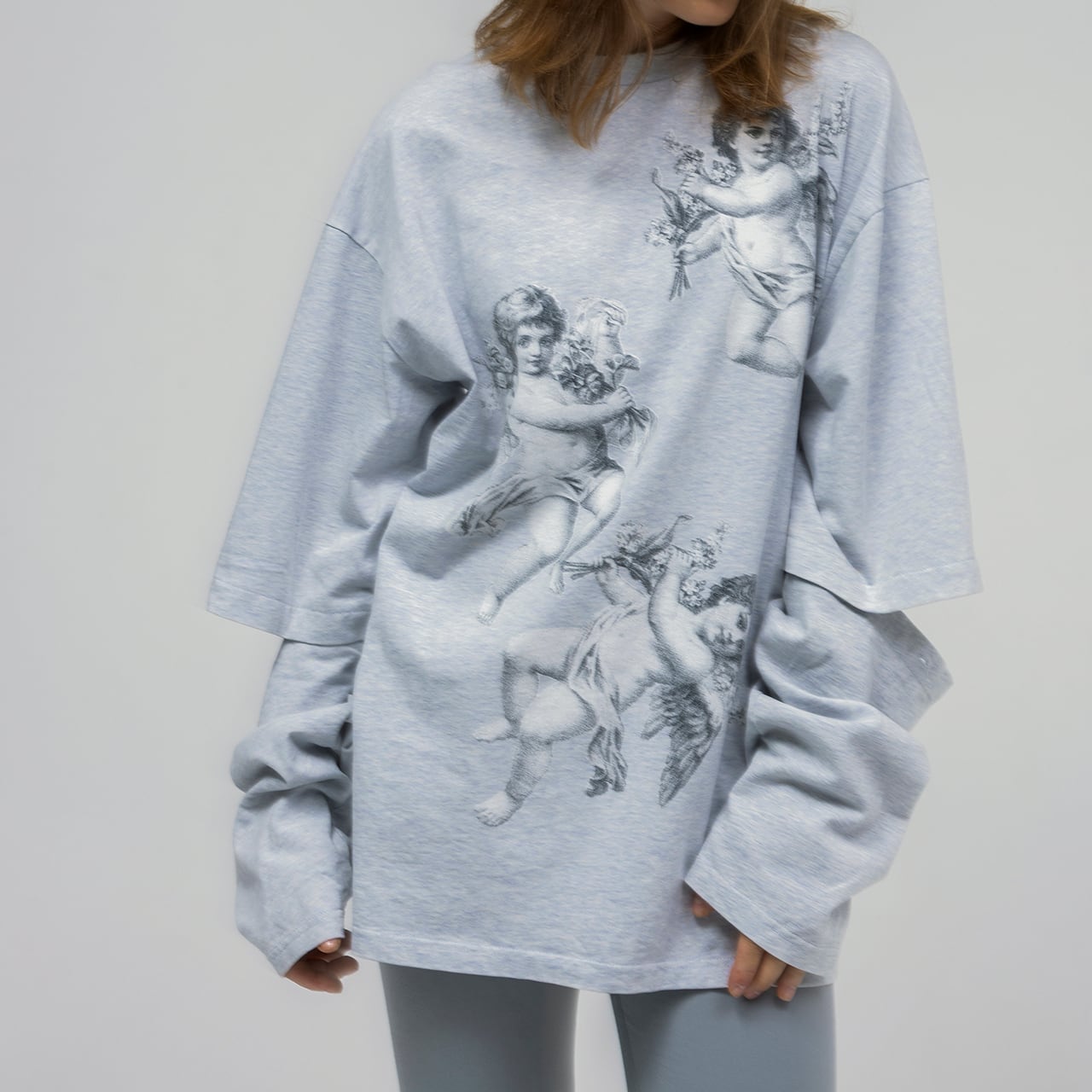 肌触りの良い杢素材に、3人の天使を大胆にあしらったビッグシルエットのロングスリーブTEE。
