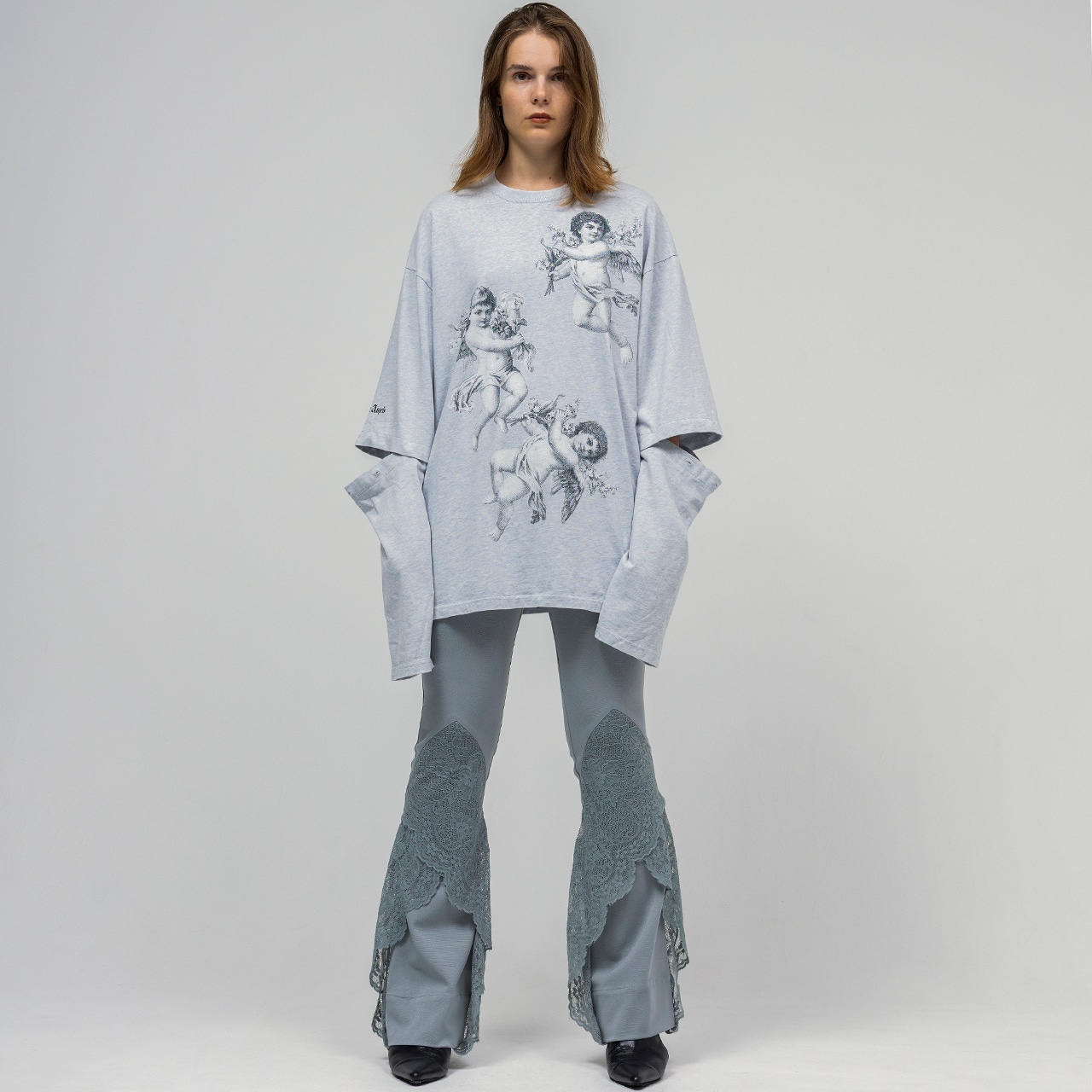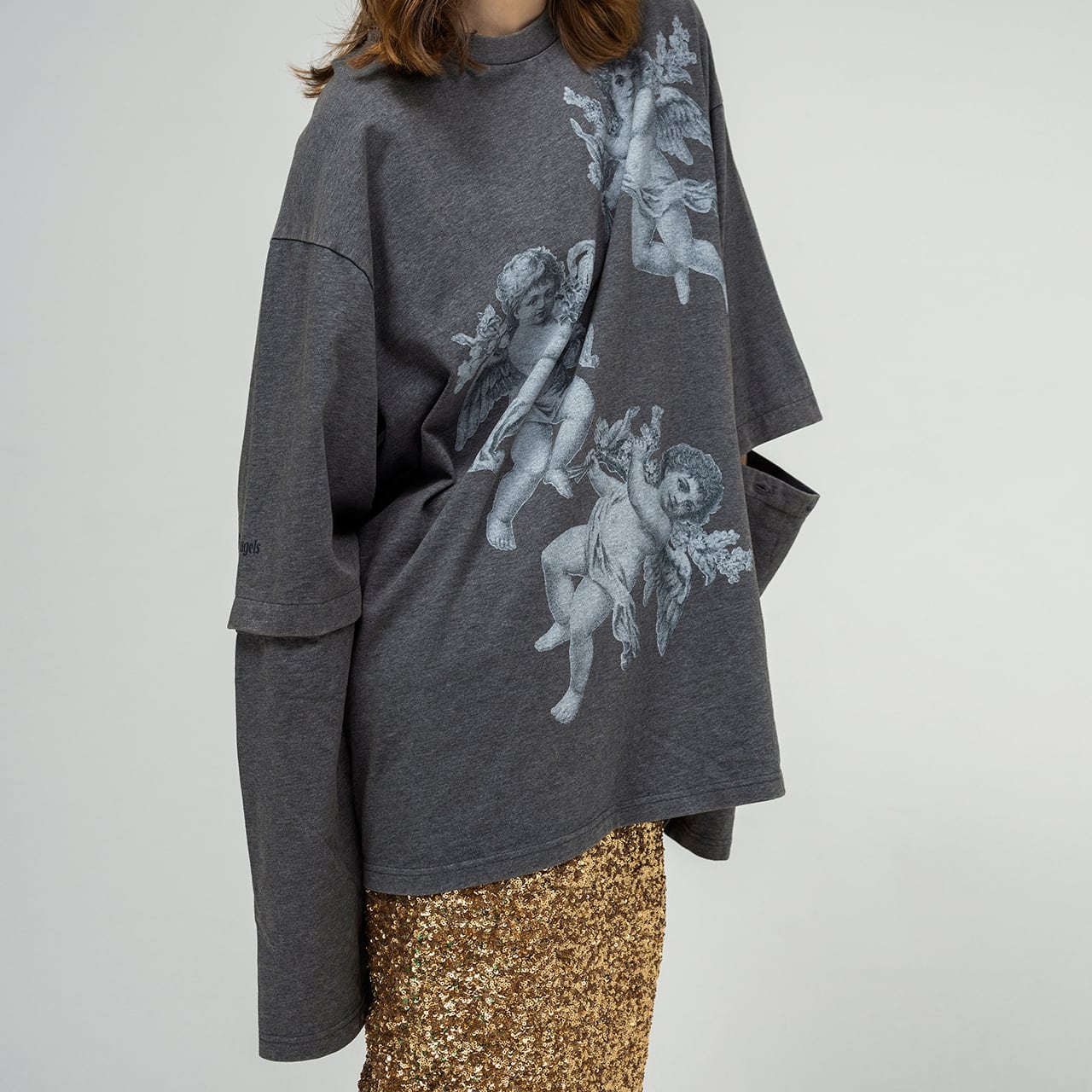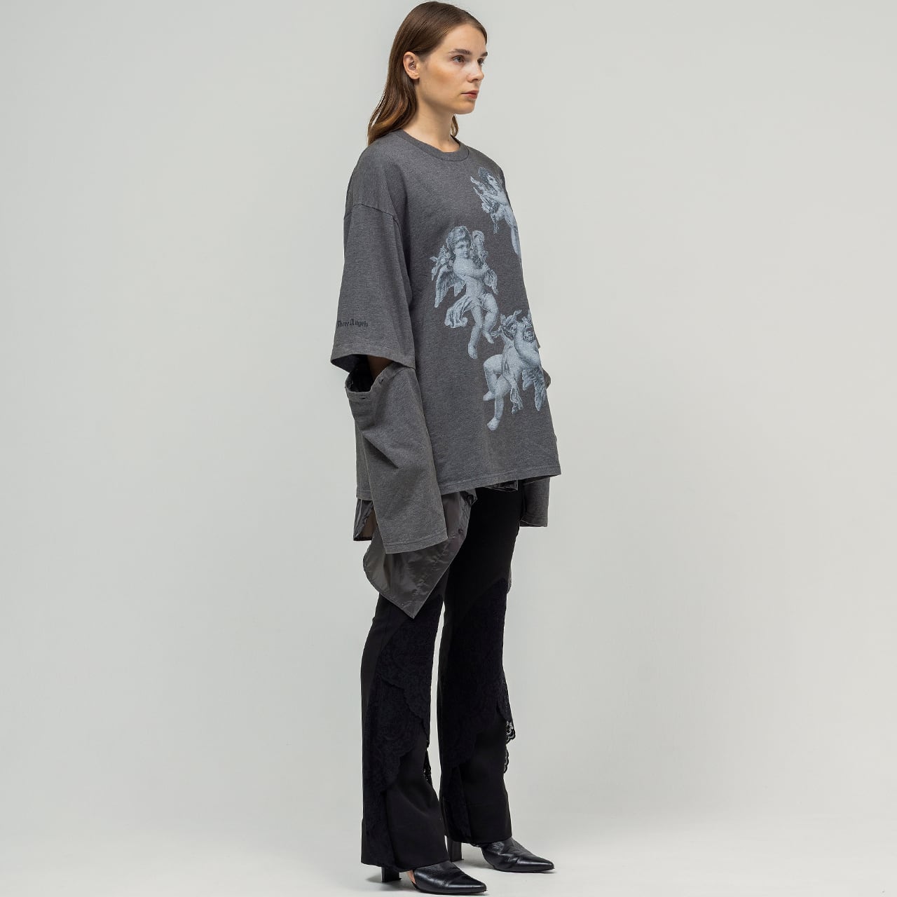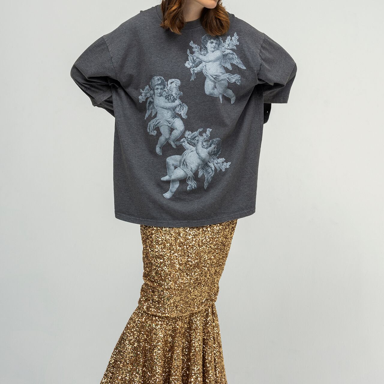 肌触りの良い杢素材に、3人の天使を大胆にあしらったビッグシルエットのロングスリーブTEE。