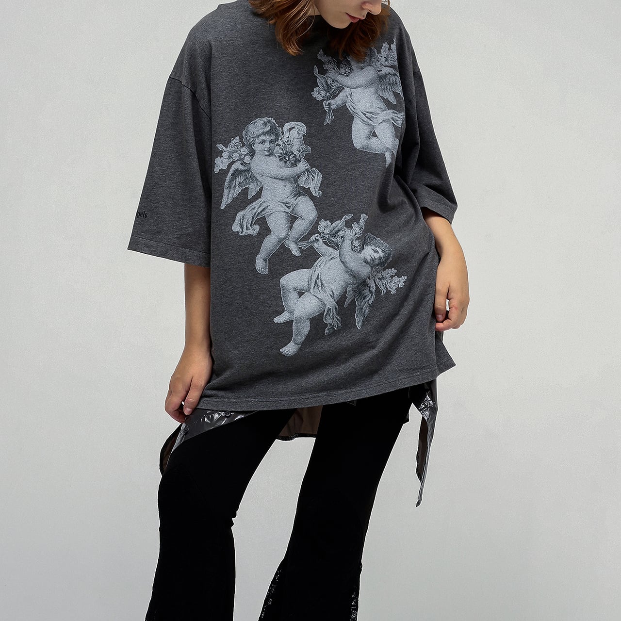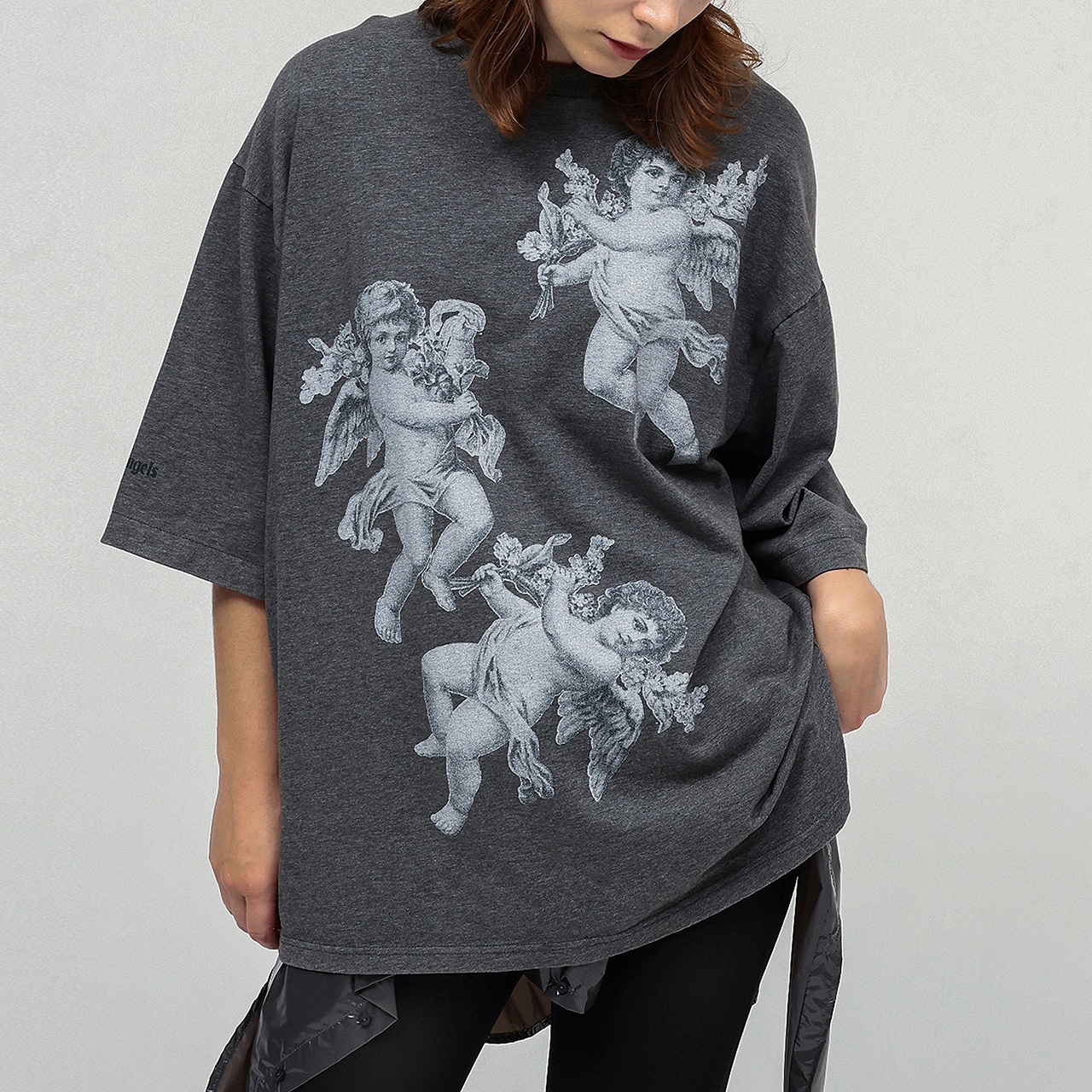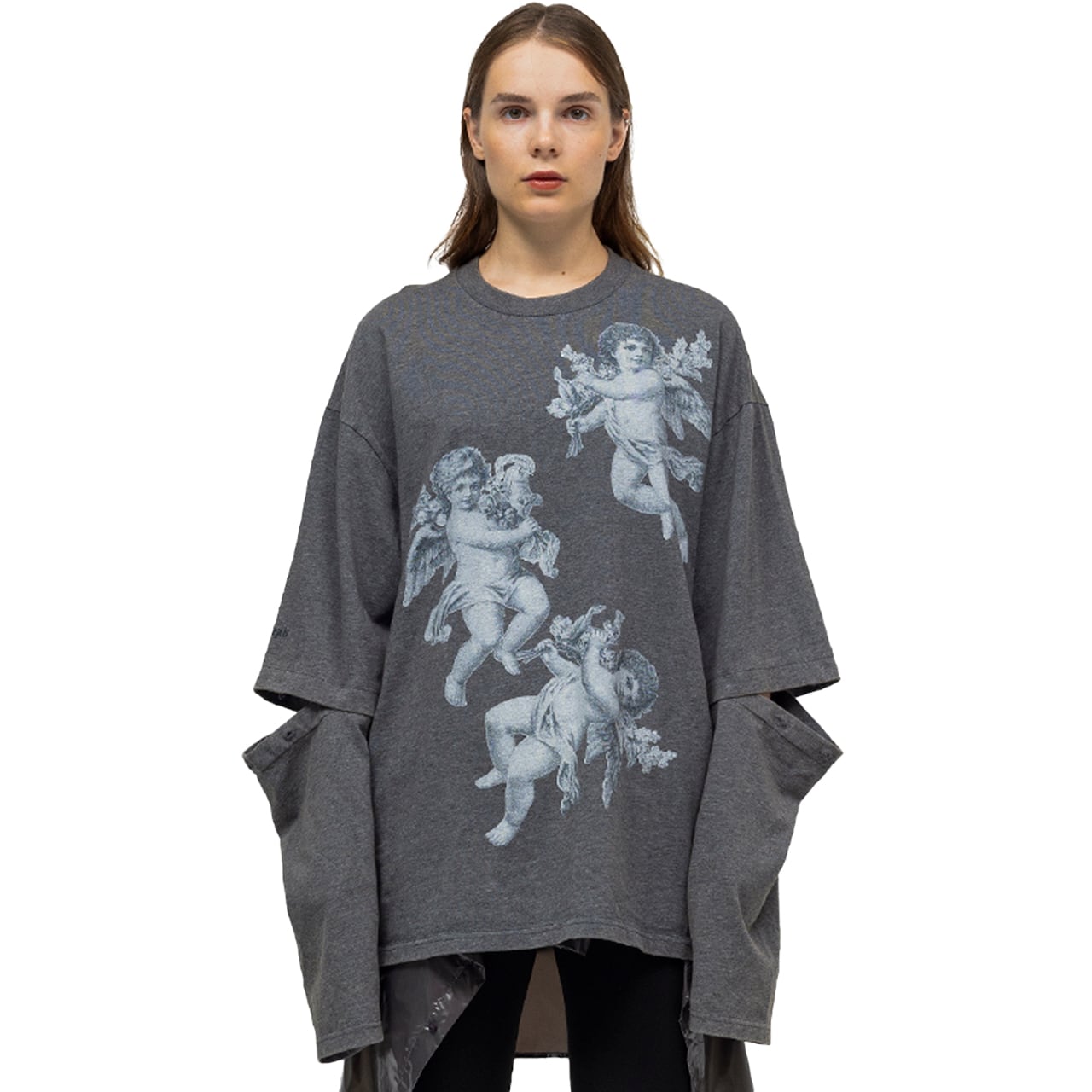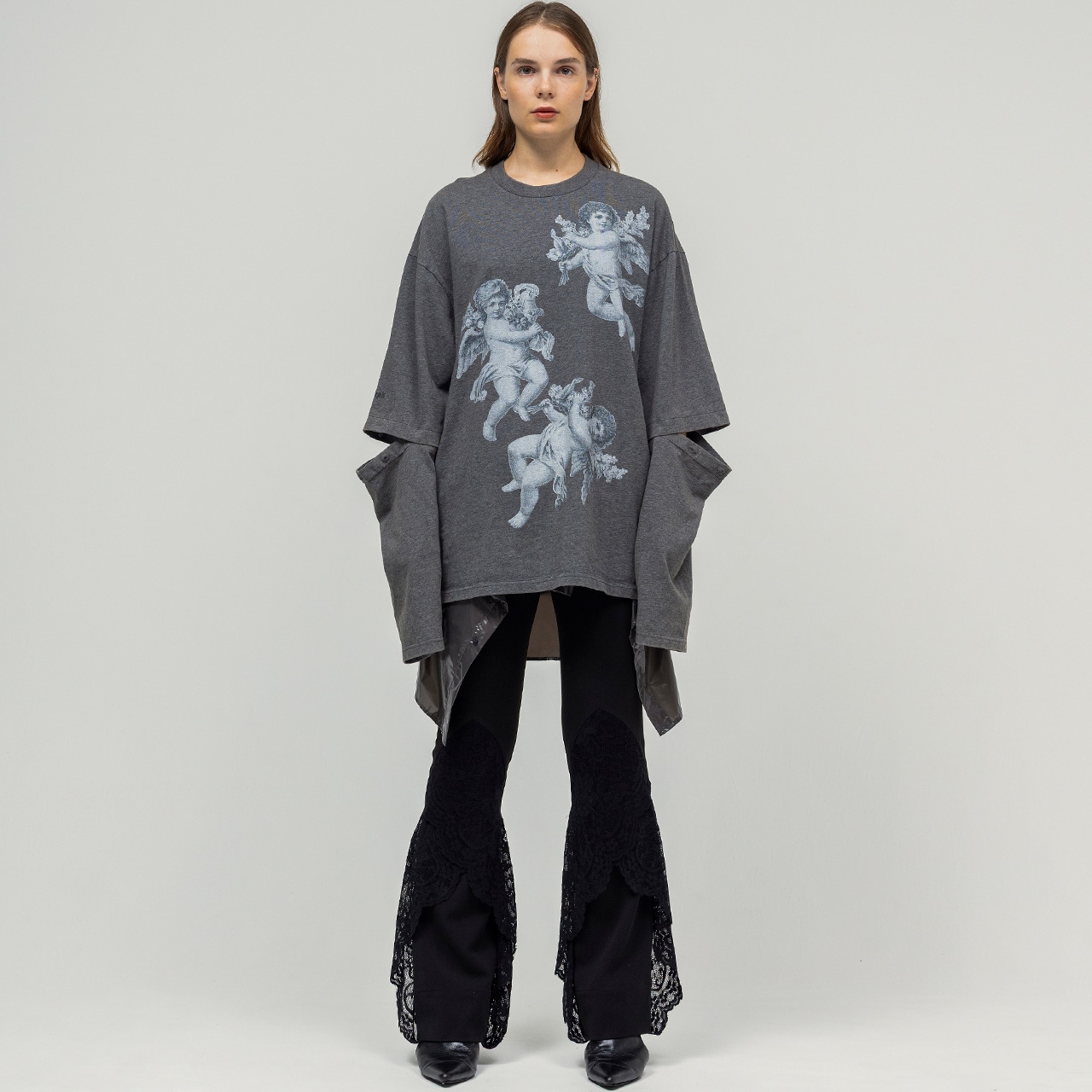 肌触りの良い杢素材に、3人の天使を大胆にあしらったビッグシルエットのロングスリーブTEE。