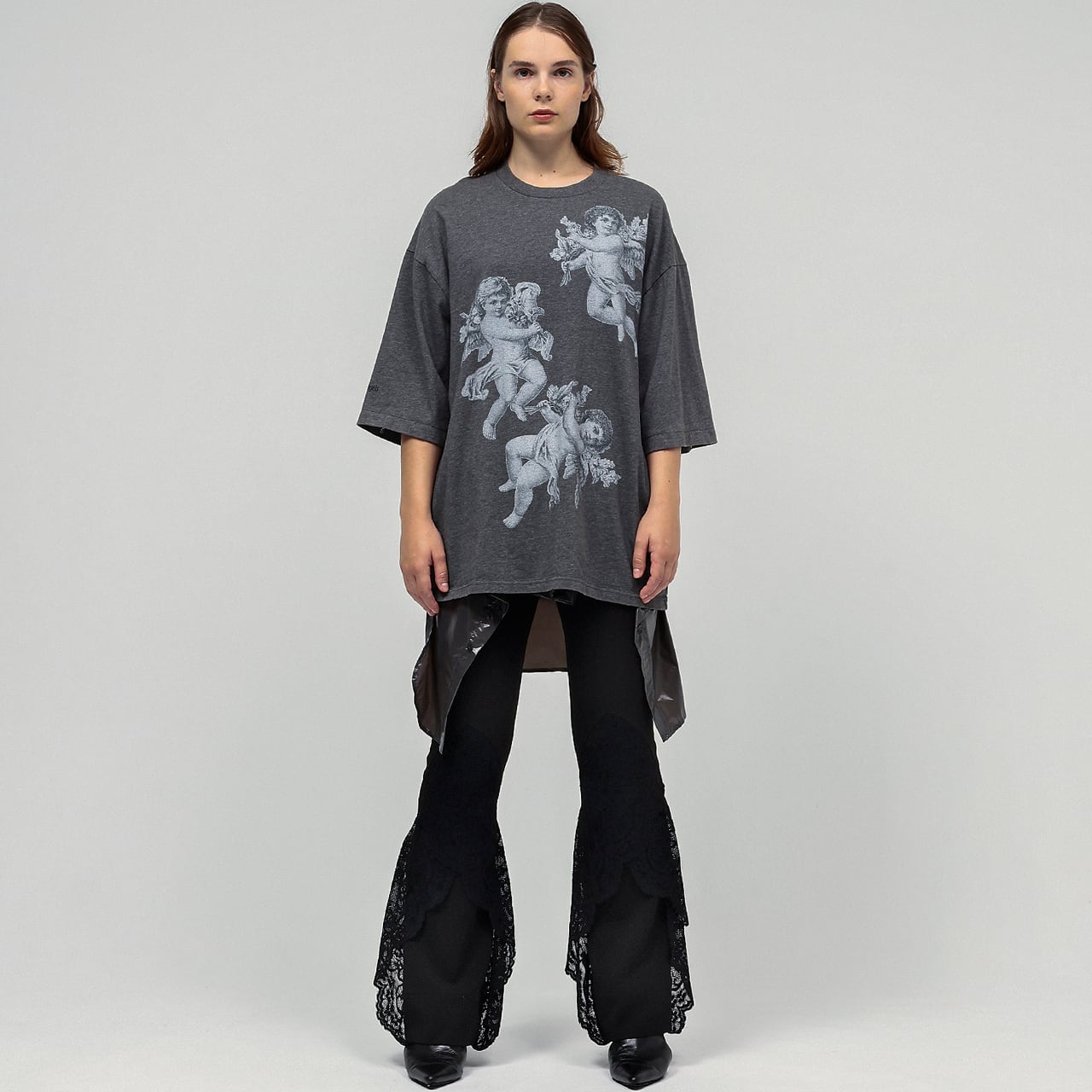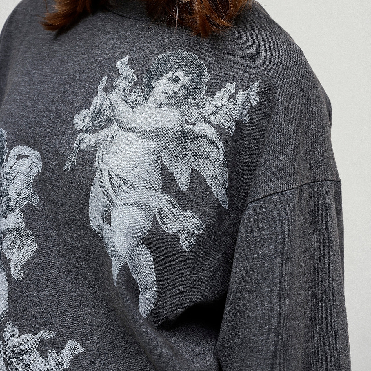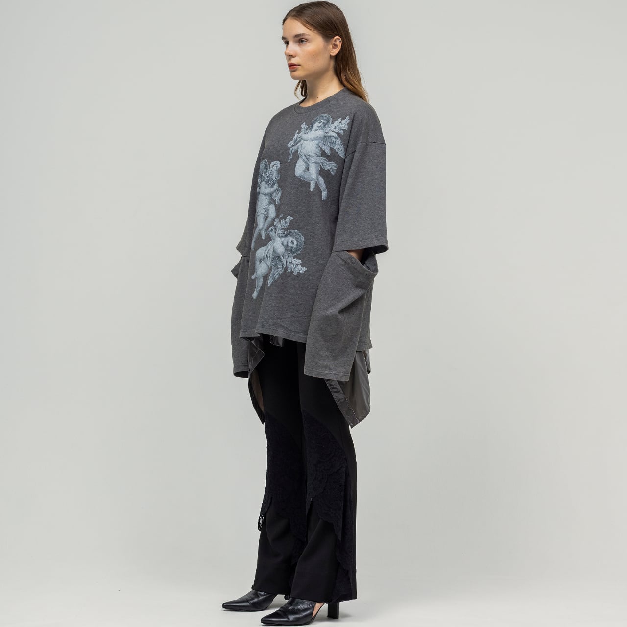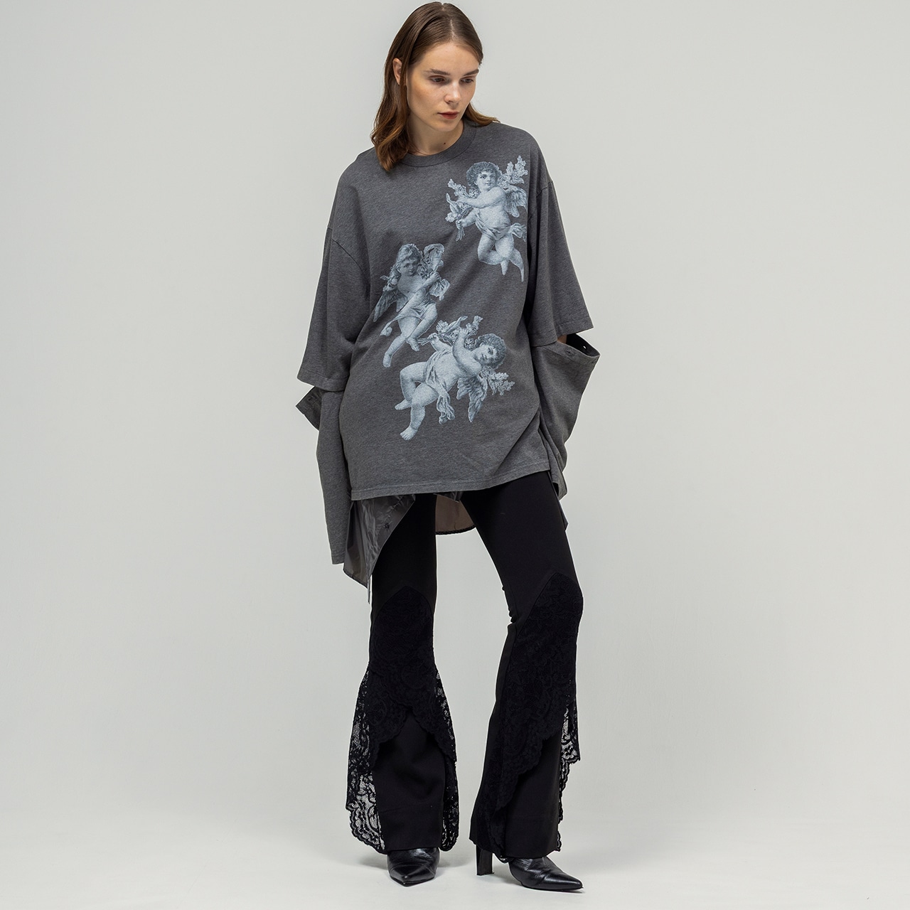 肌触りの良い杢素材に、3人の天使を大胆にあしらったビッグシルエットのロングスリーブTEE。