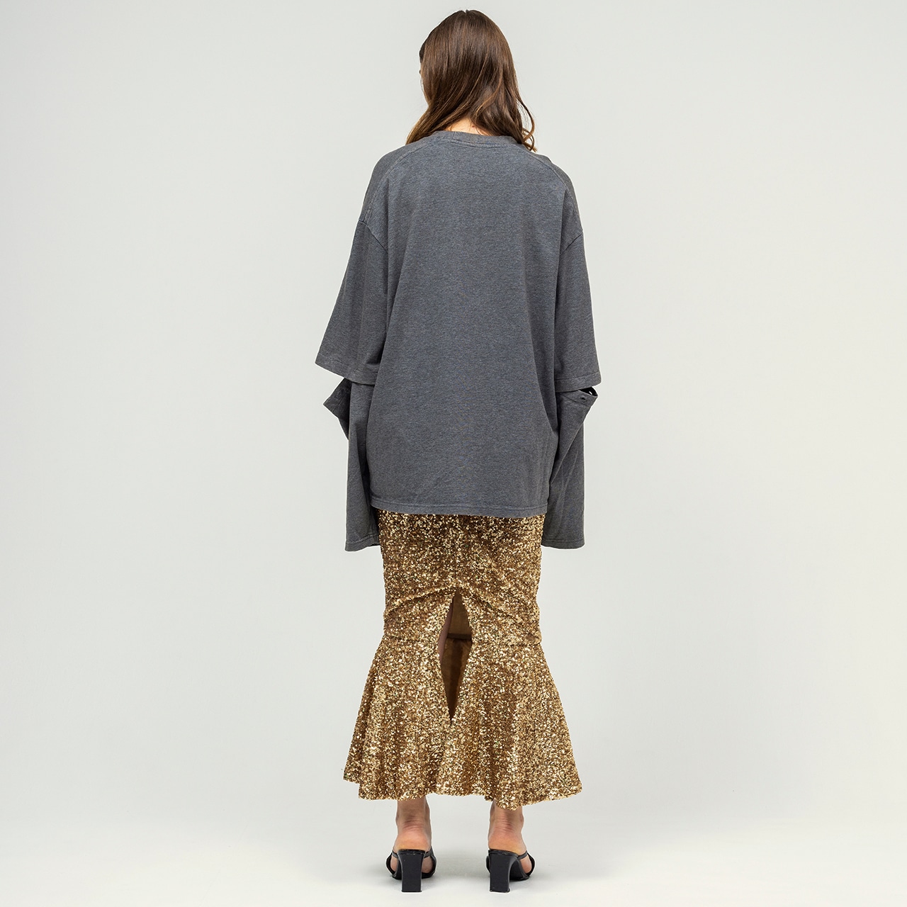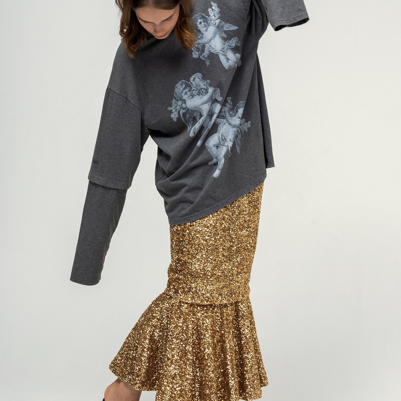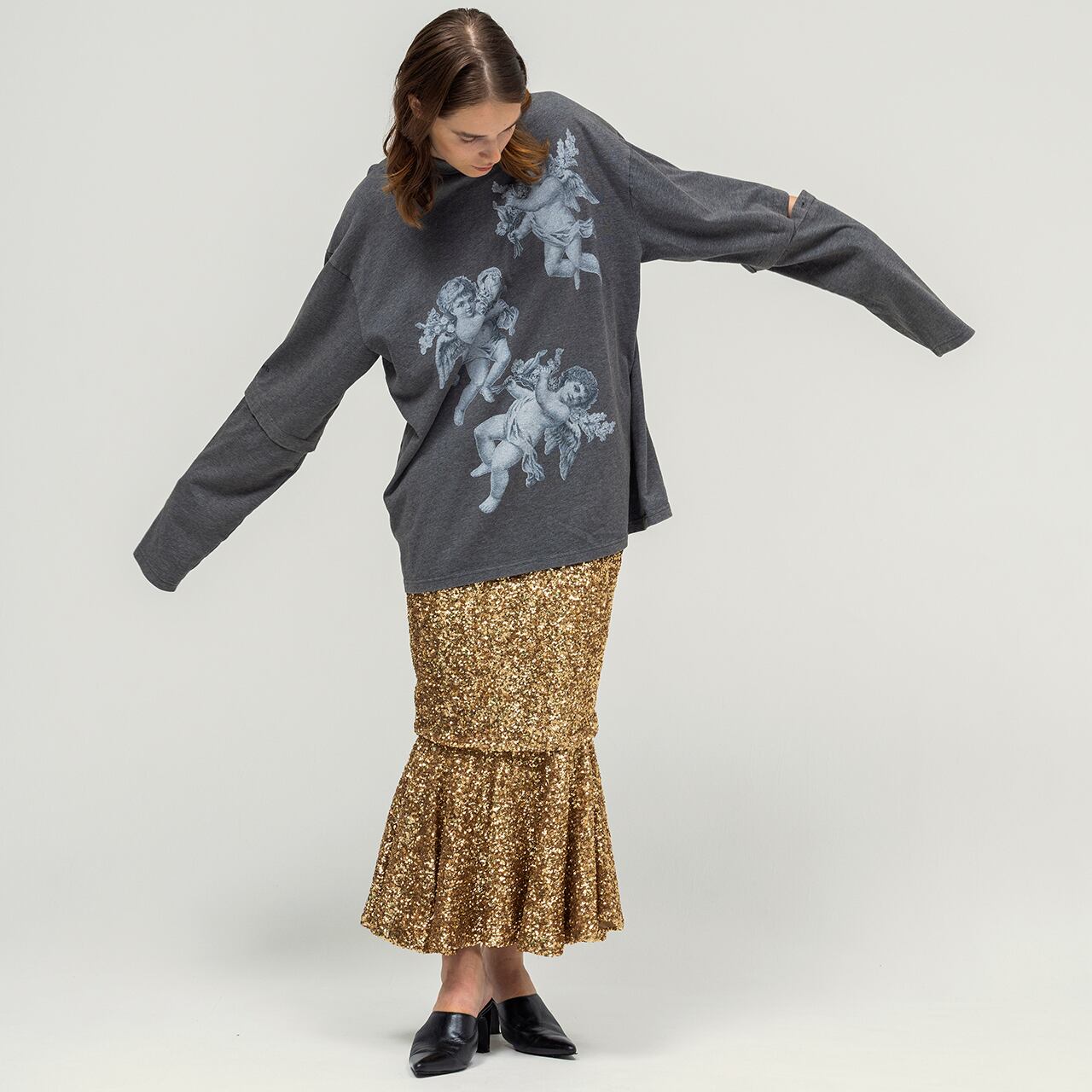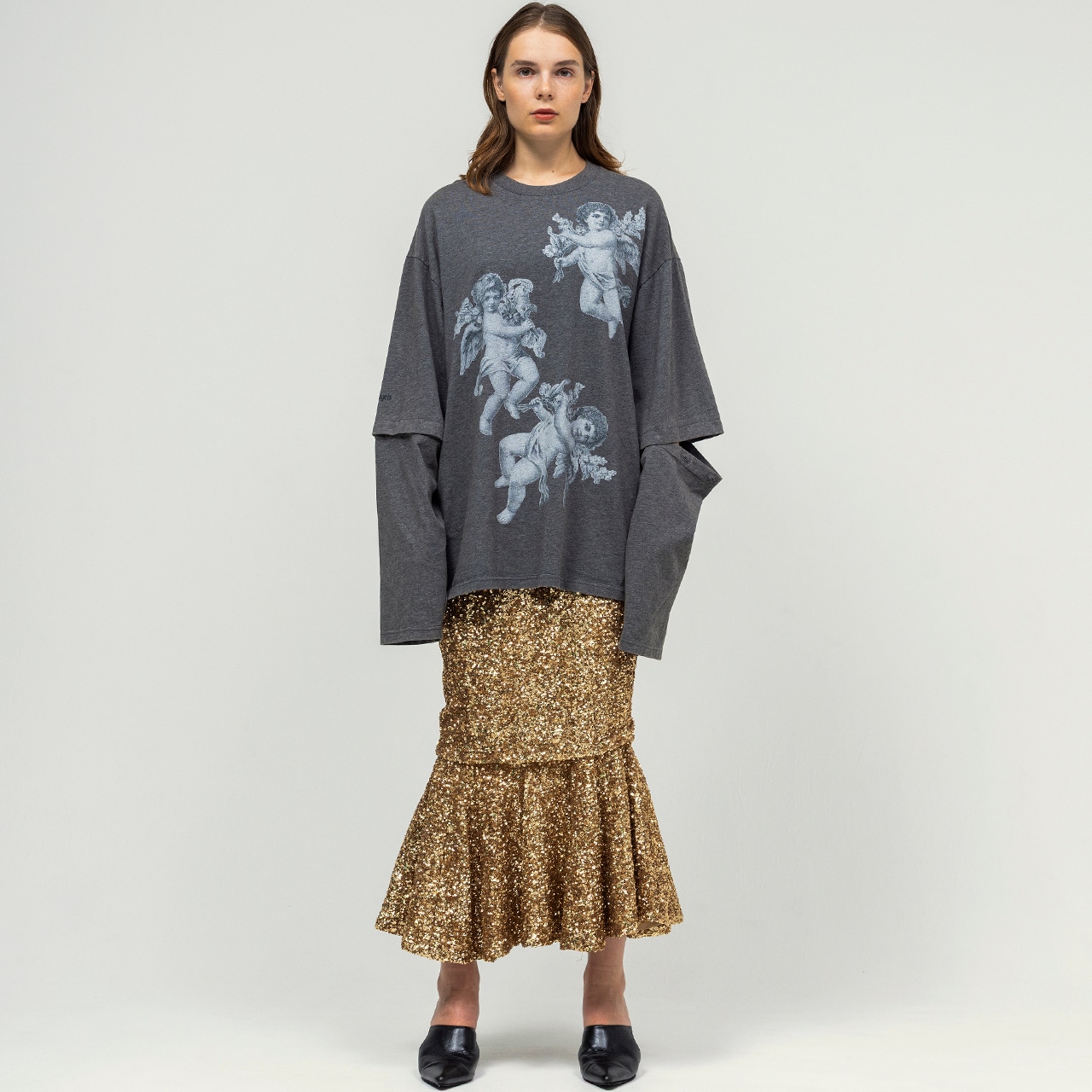 肌触りの良い杢素材に、3人の天使を大胆にあしらったビッグシルエットのロングスリーブTEE。