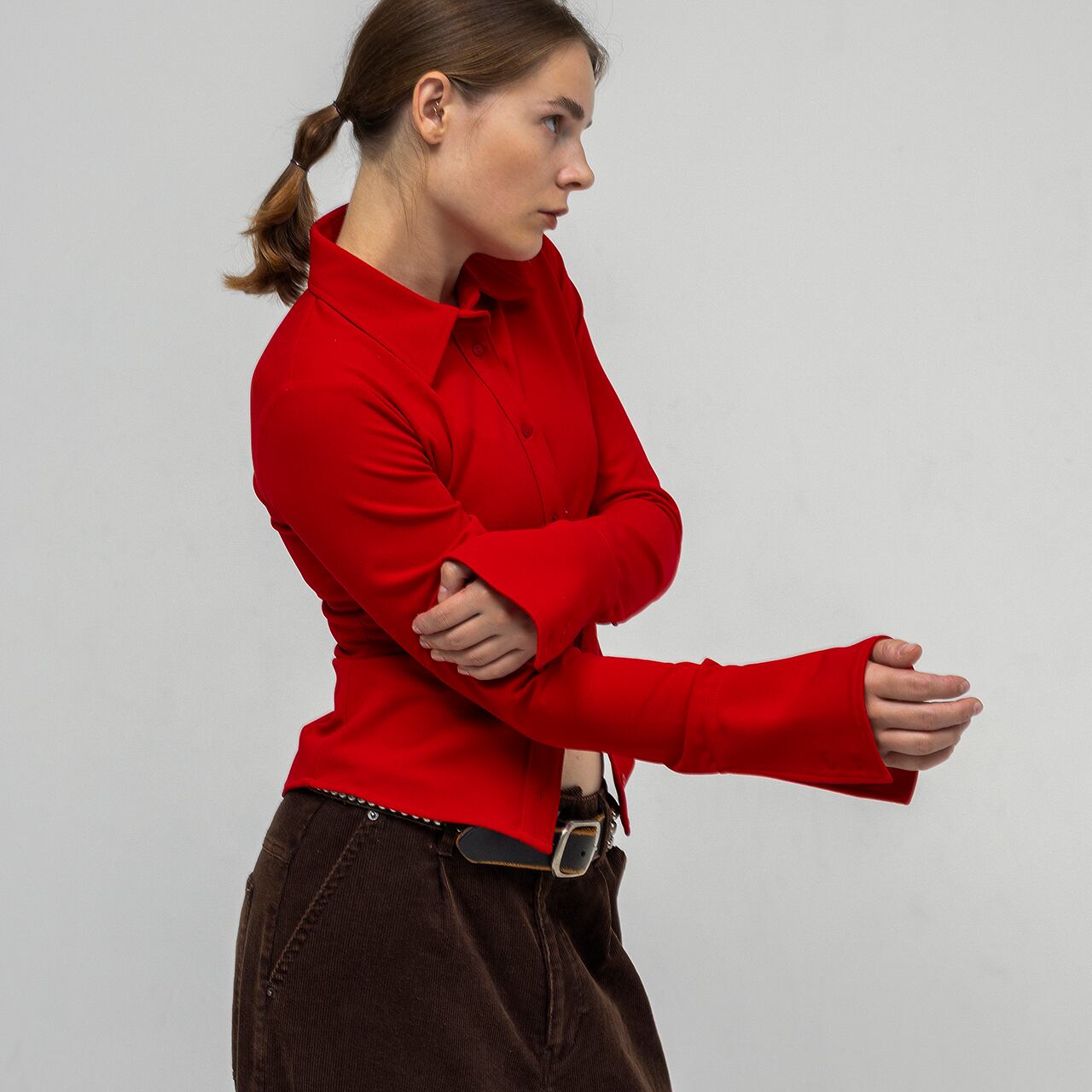 ストレッチ素材でしなやかにフィットするタイトシルエットシャツ。