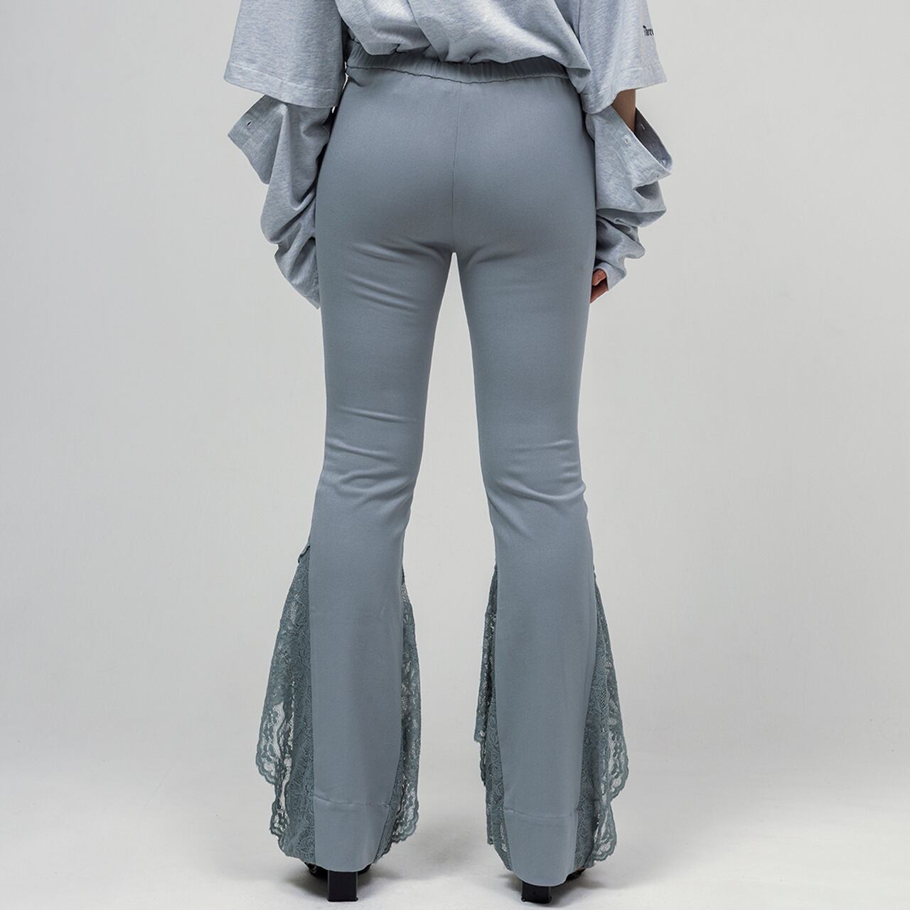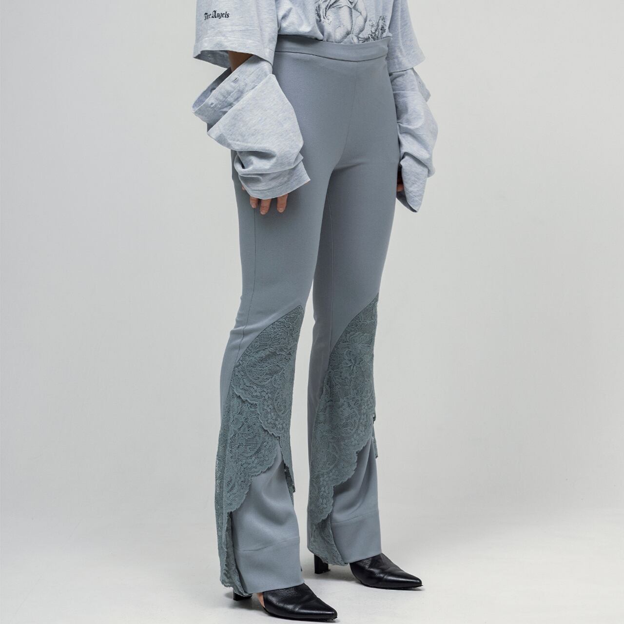 繊細なスカラレースが裾を彩る、レディライクなフレアパンツ。