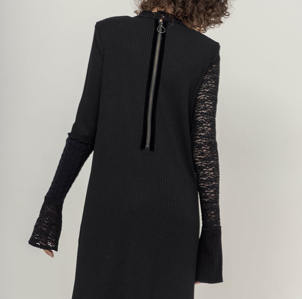 バックジップにはベルベットテープを用いて、高級感のある仕上がりに。