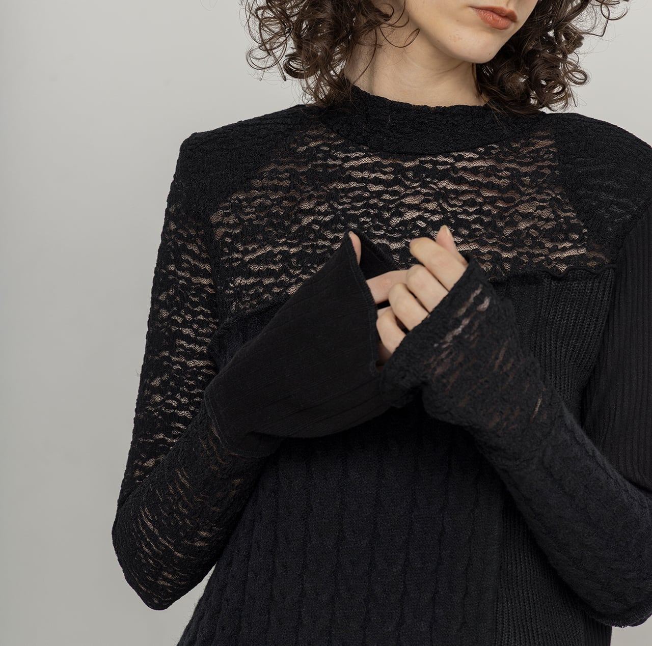 ・異素材パッチワーク(ニットソー4種+レース+ヴィンテージサテン)