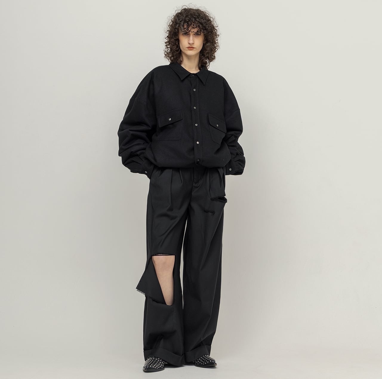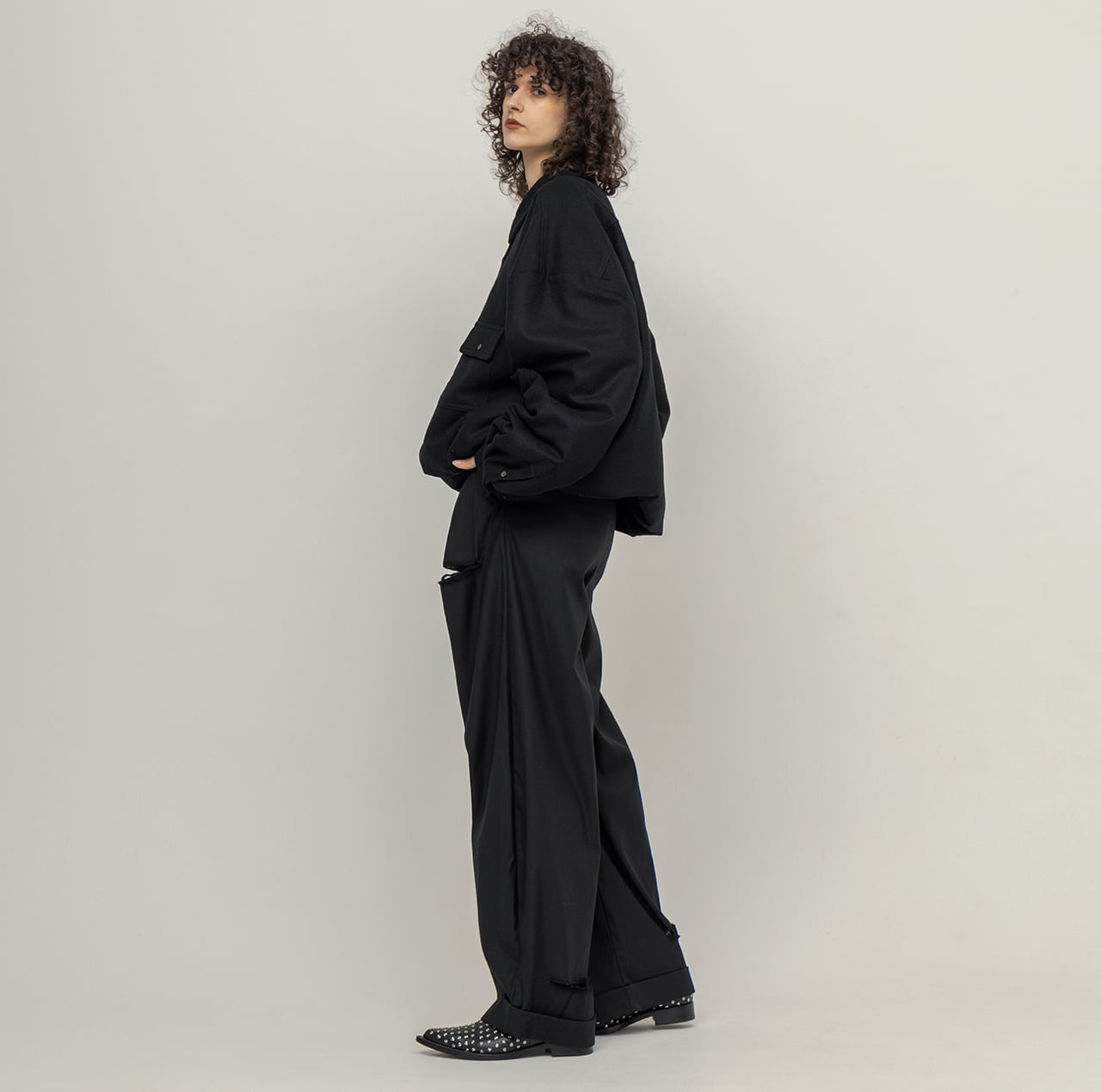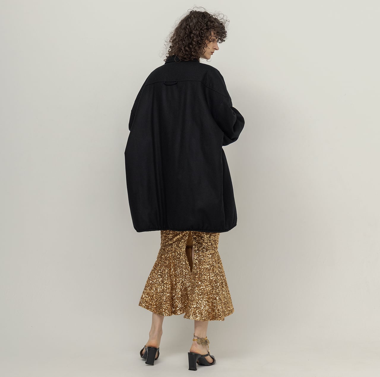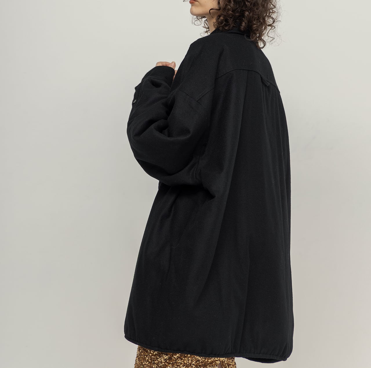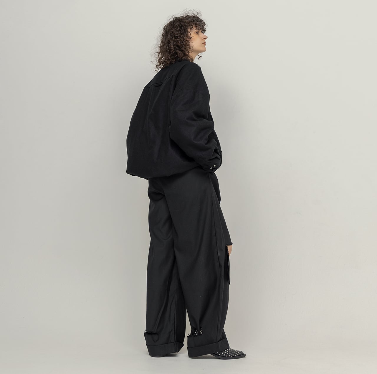 薄手のウール素材を使用し、ビッグシルエットに上品な緊張感をプラス。
