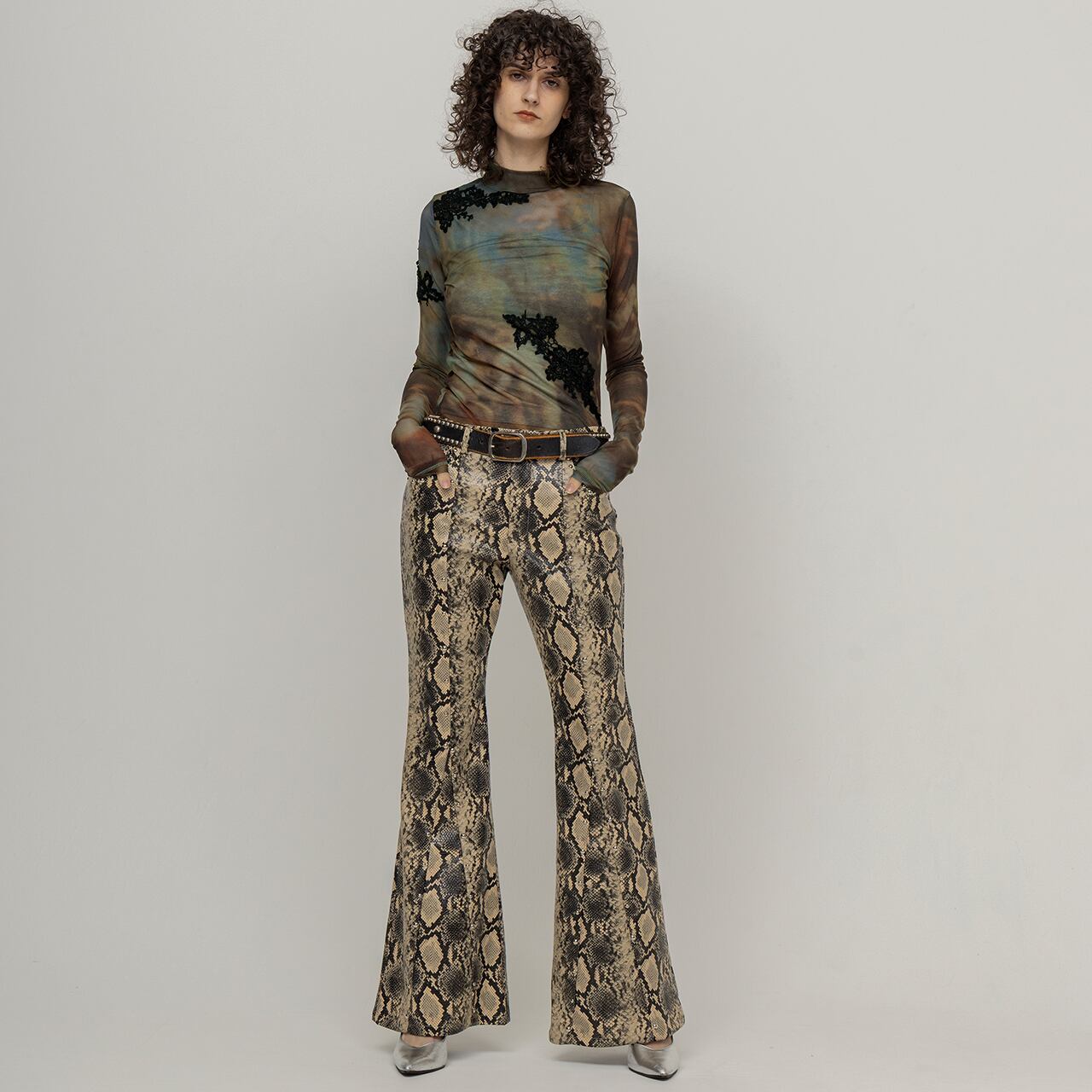 PYTHON STUDS FLARE PANTS