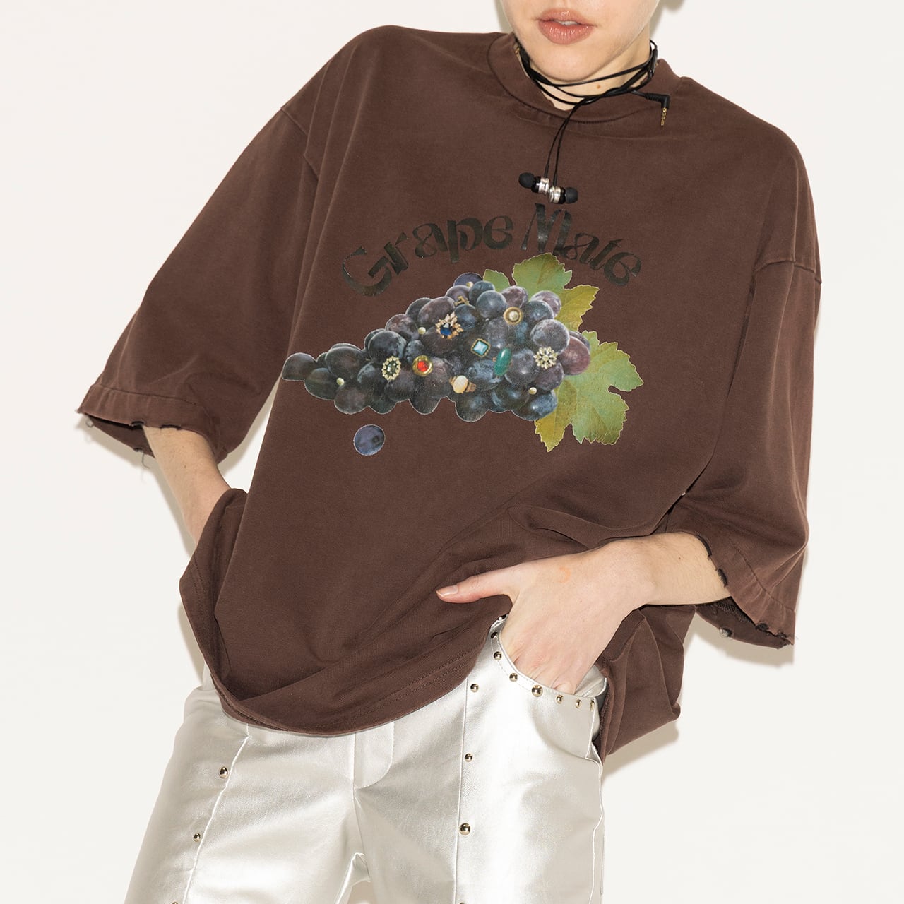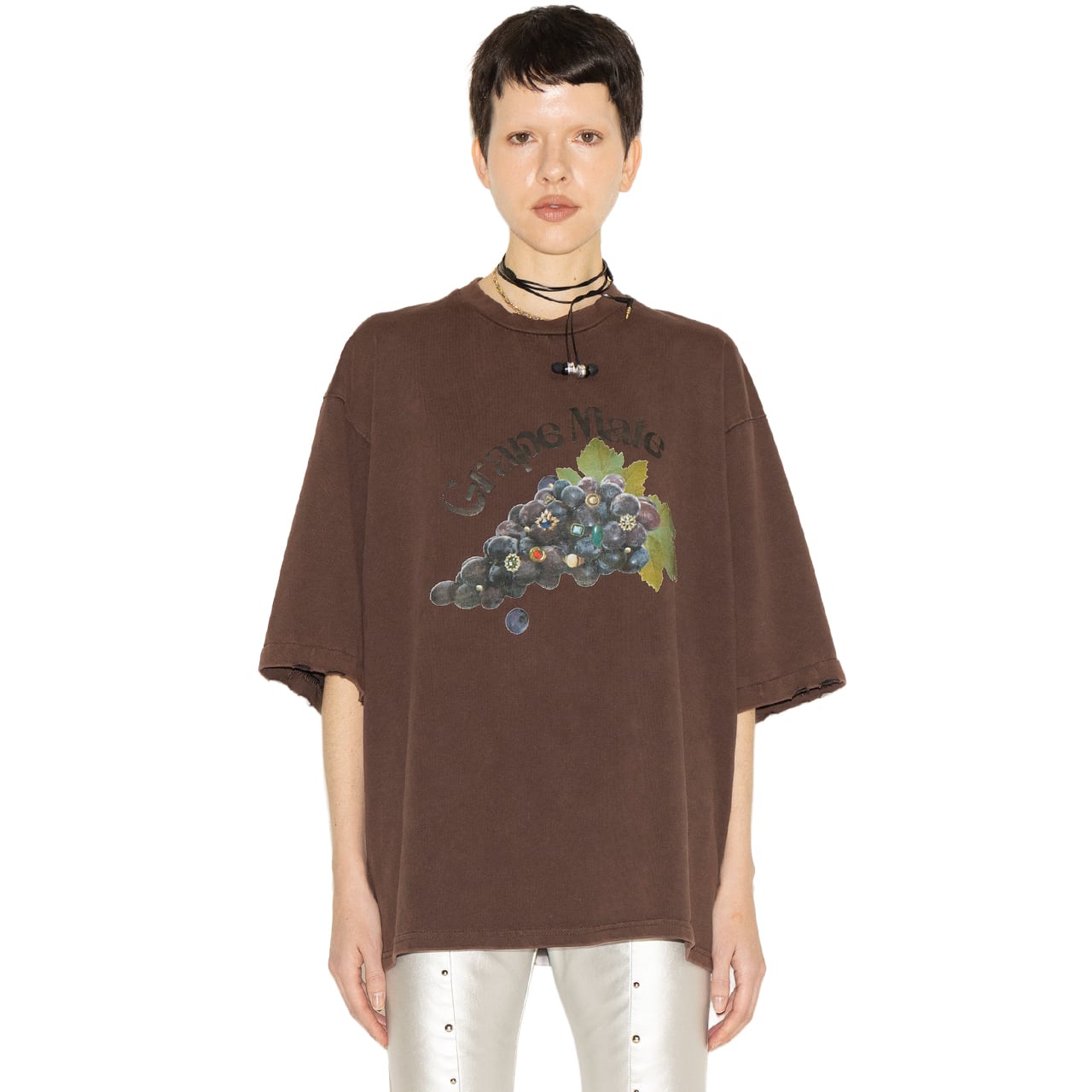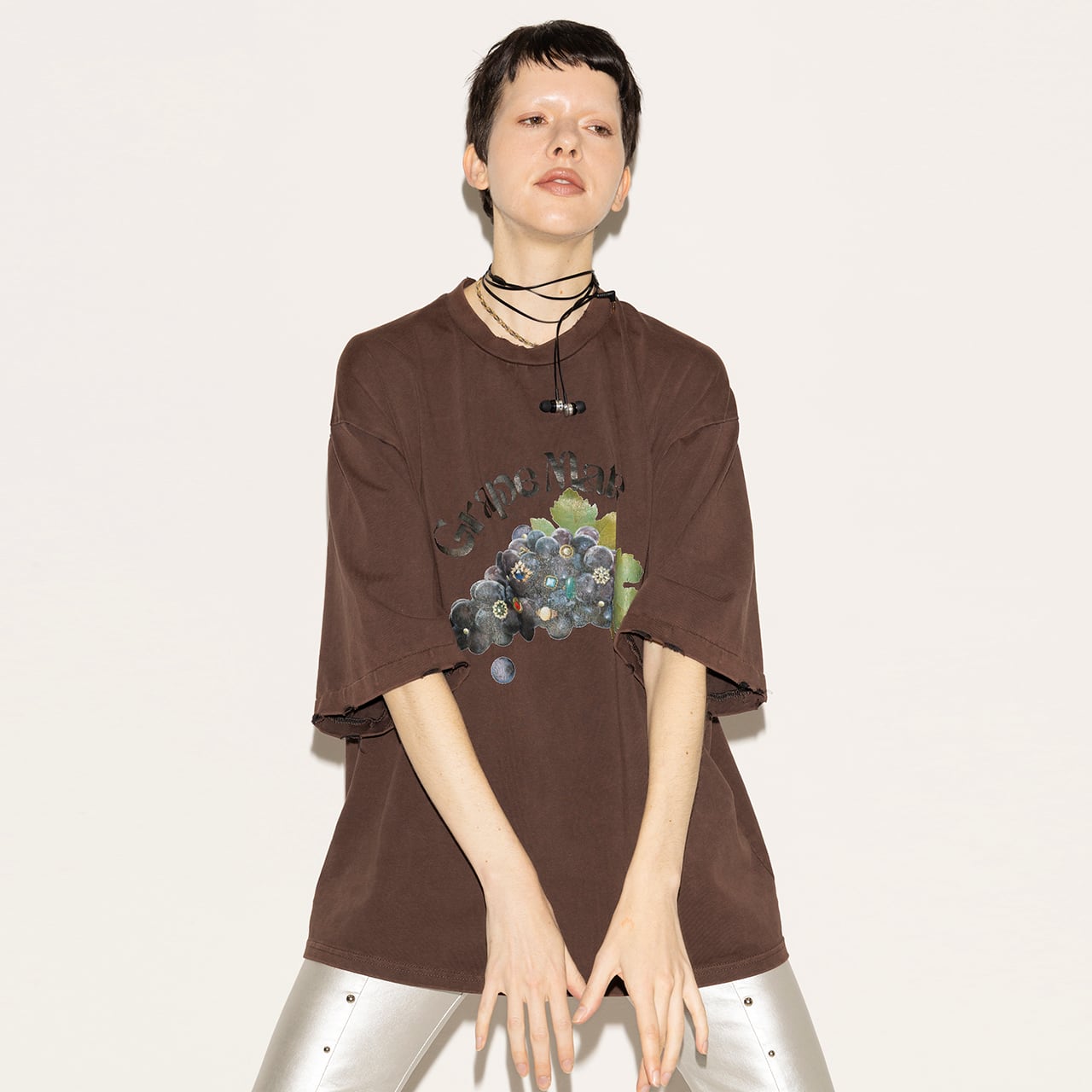 襟元と袖口にはダメージ加工を施し、ラフな抜け感を演出。