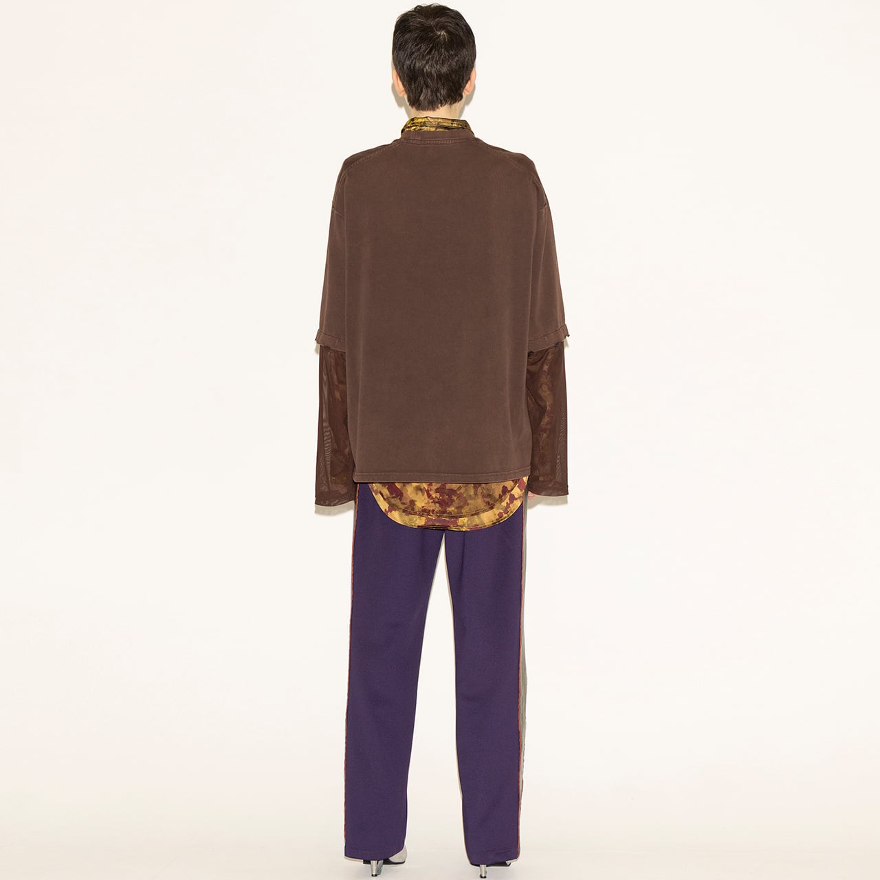 ・カットソー×シアーの異素材コンビネーション
