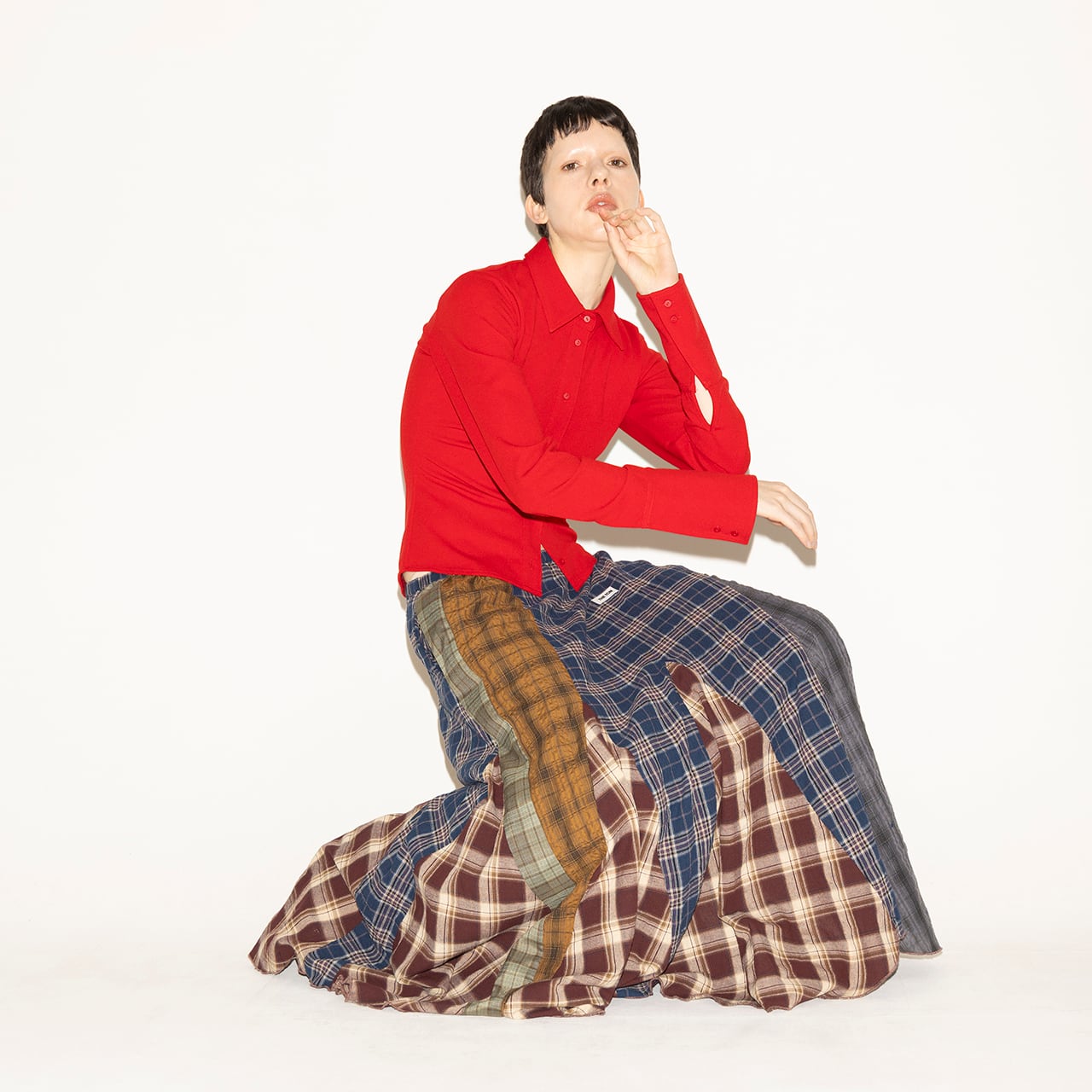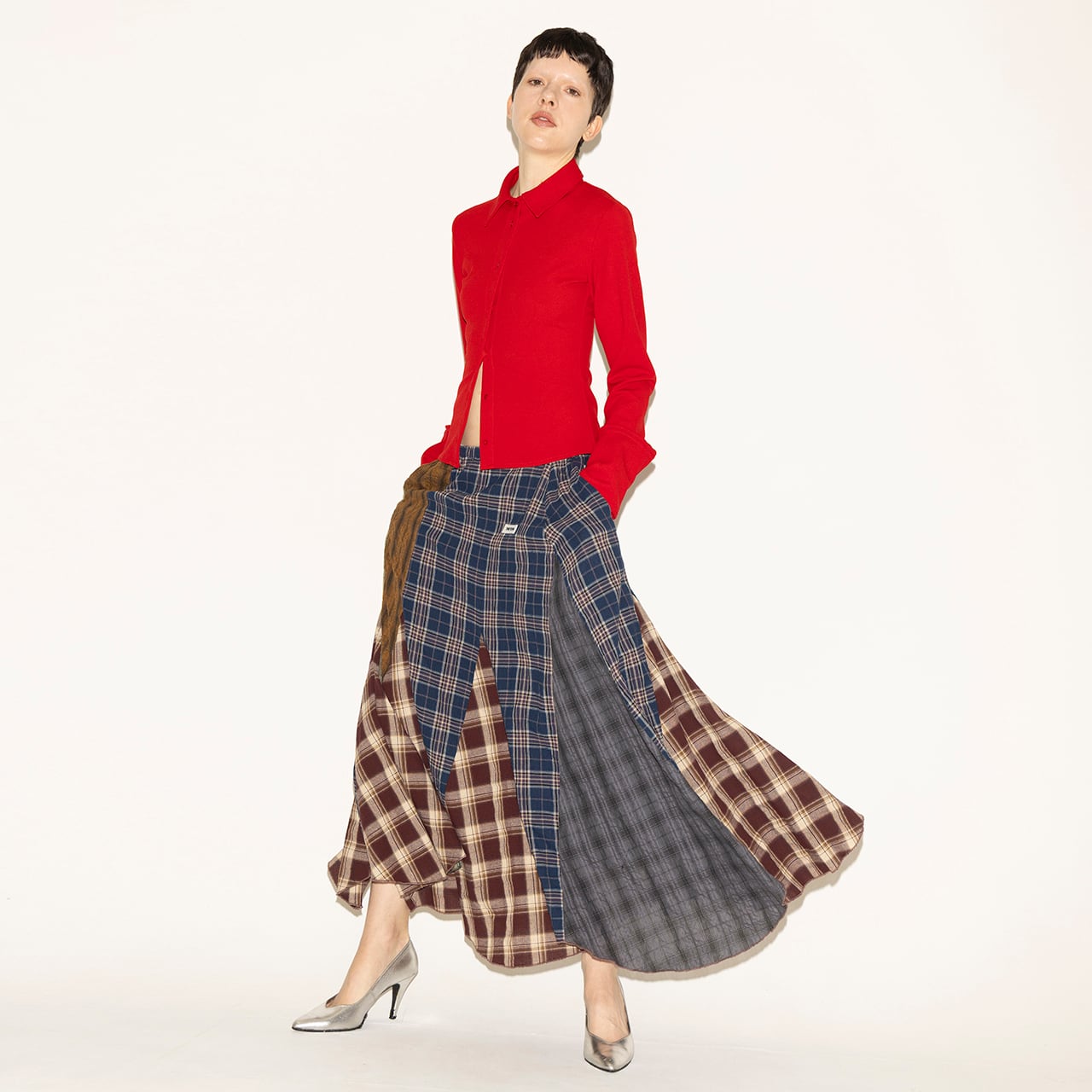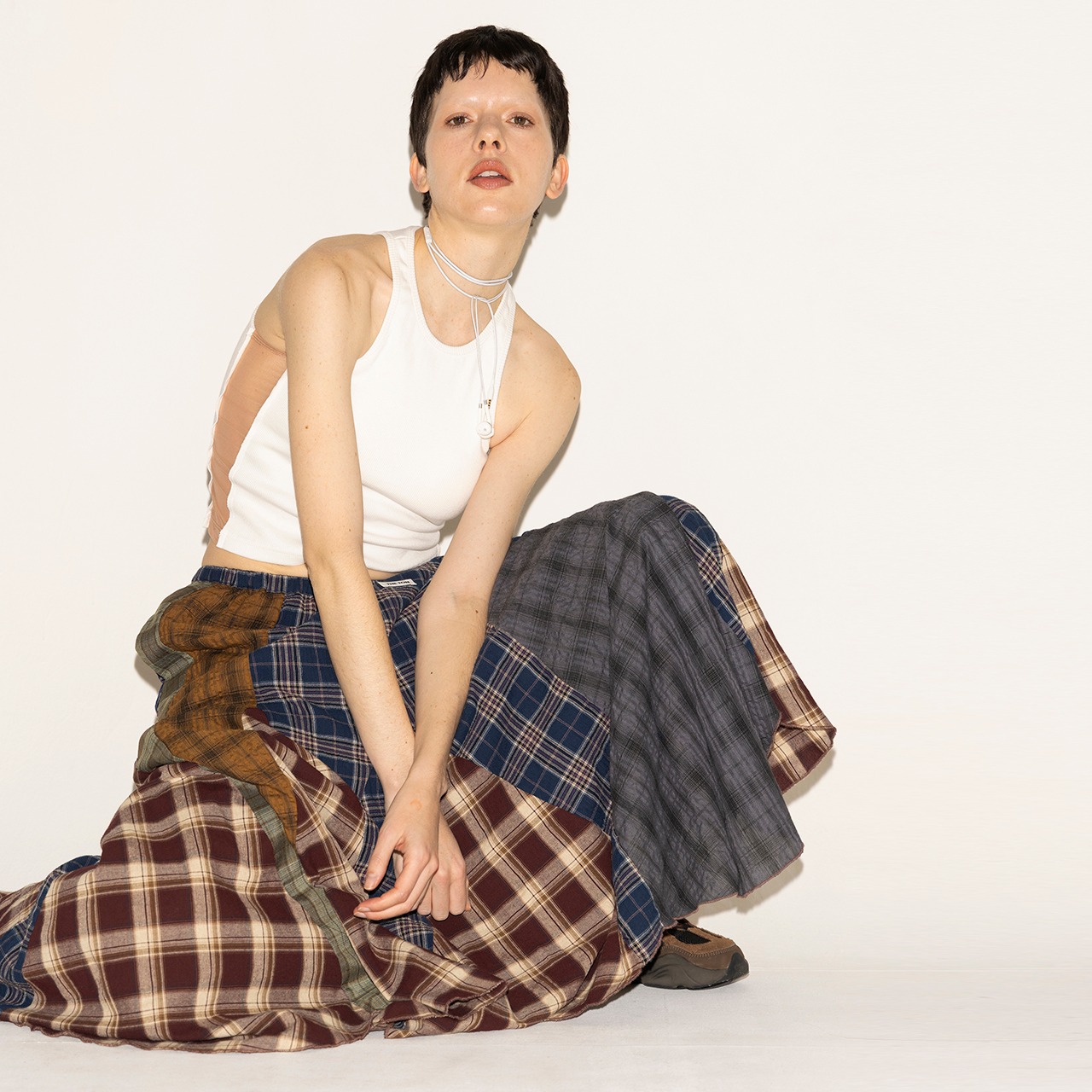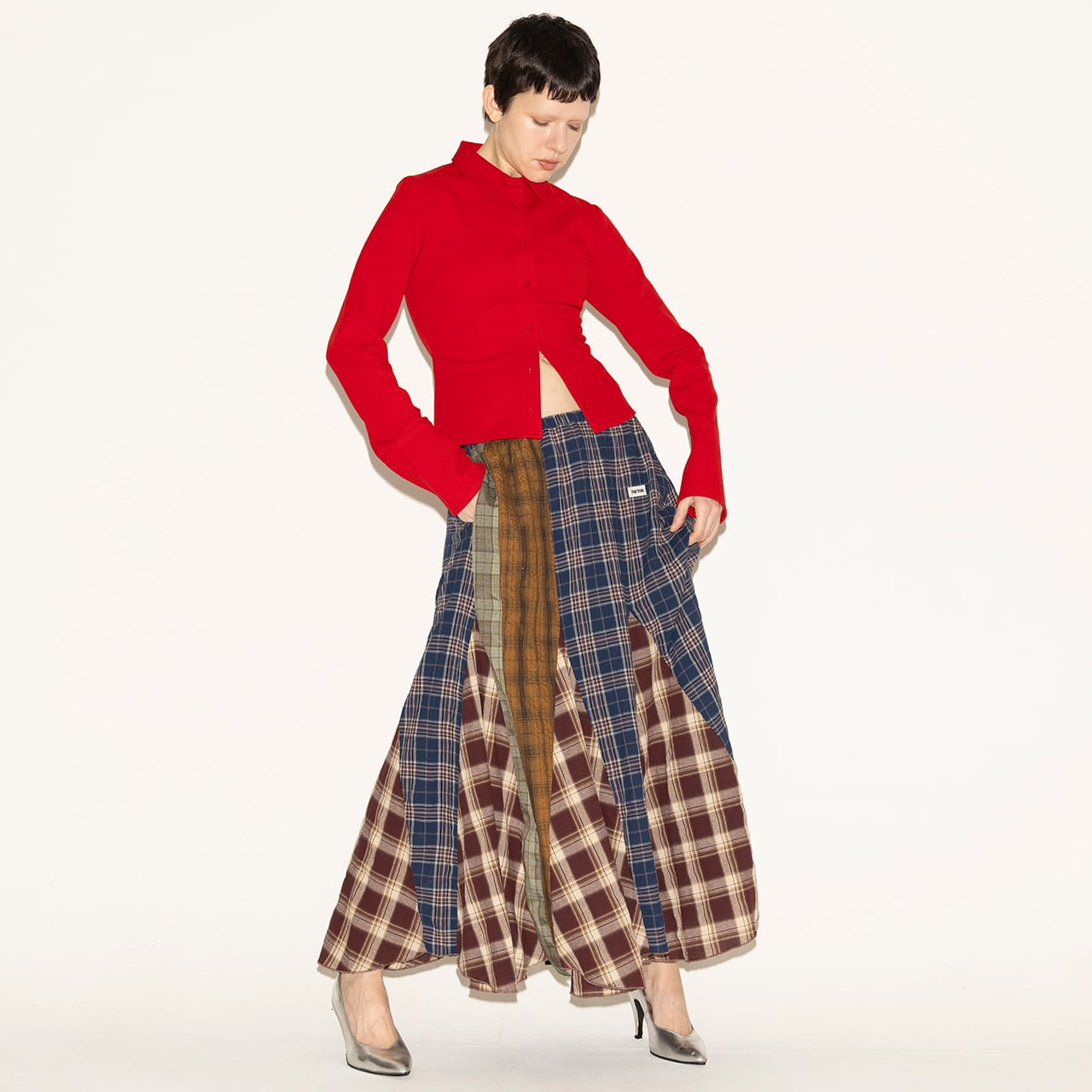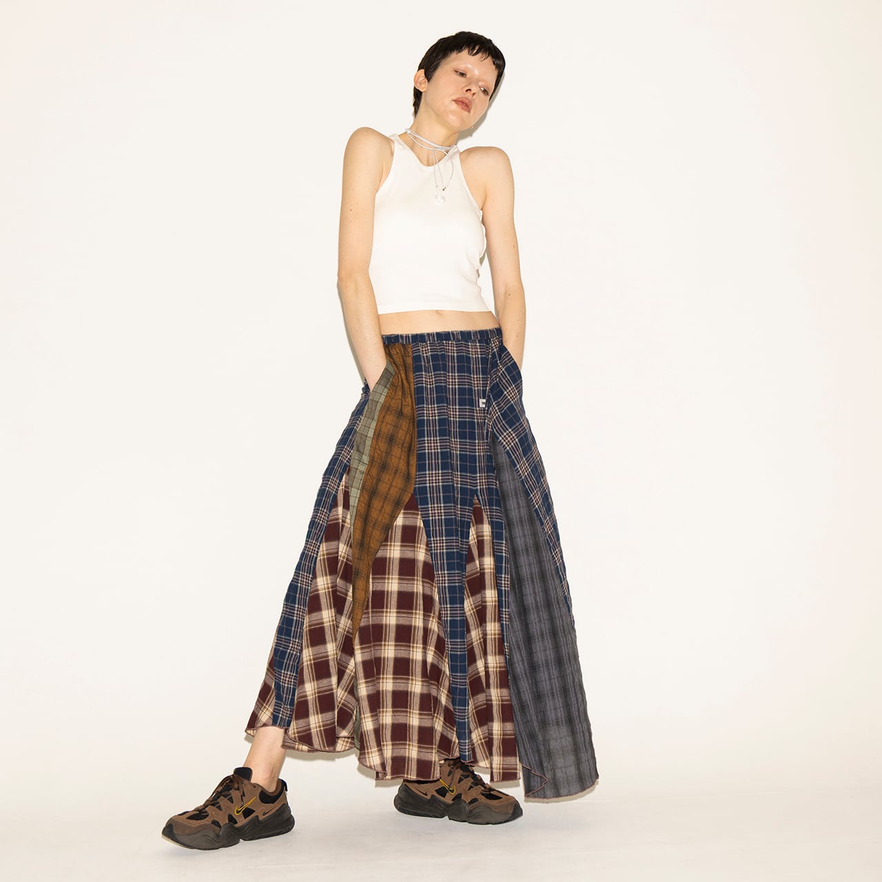 PATCHWORK CHECKED SKIRT