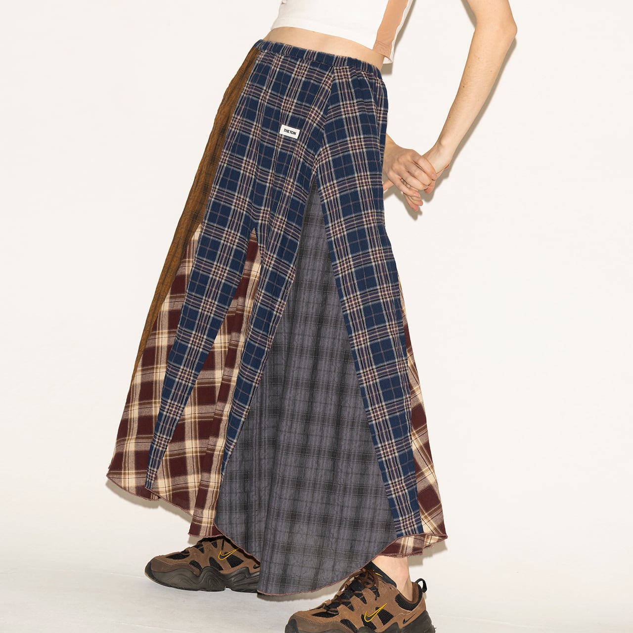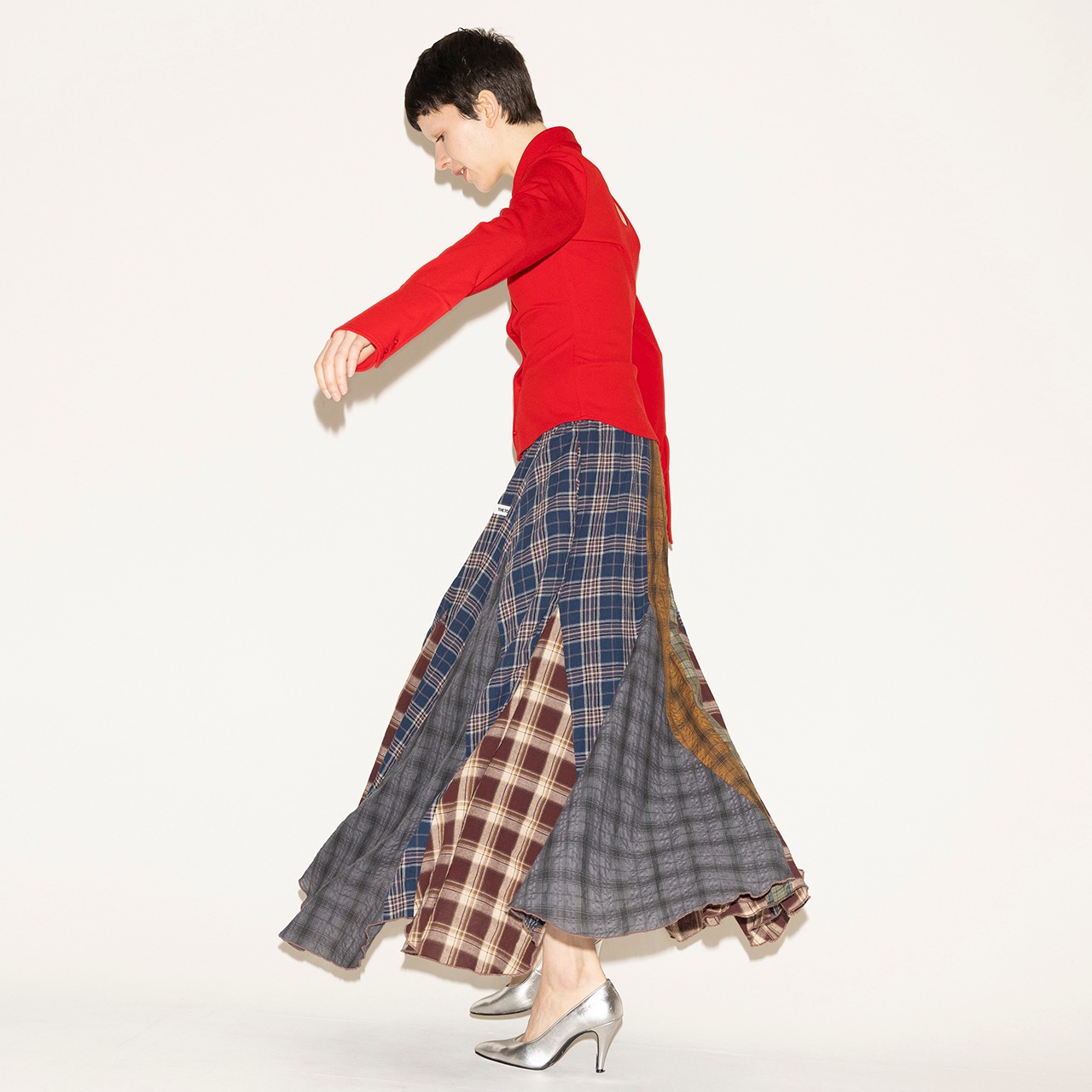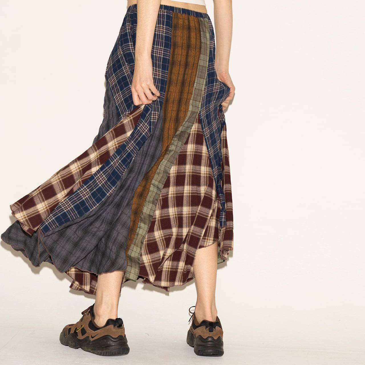 パッチワークのように構築したロングスカート。