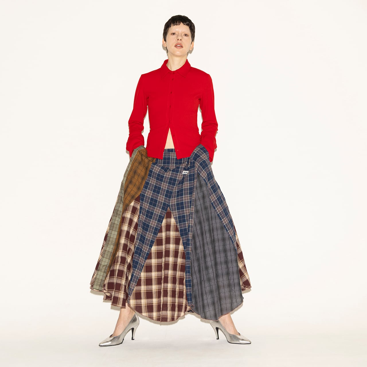 5種類のチェック生地を大胆に切り替え、