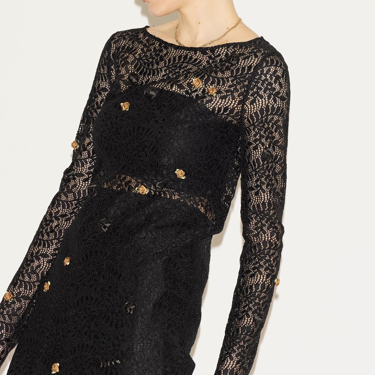 FLOWER MOTIF CORD LACE DRESS