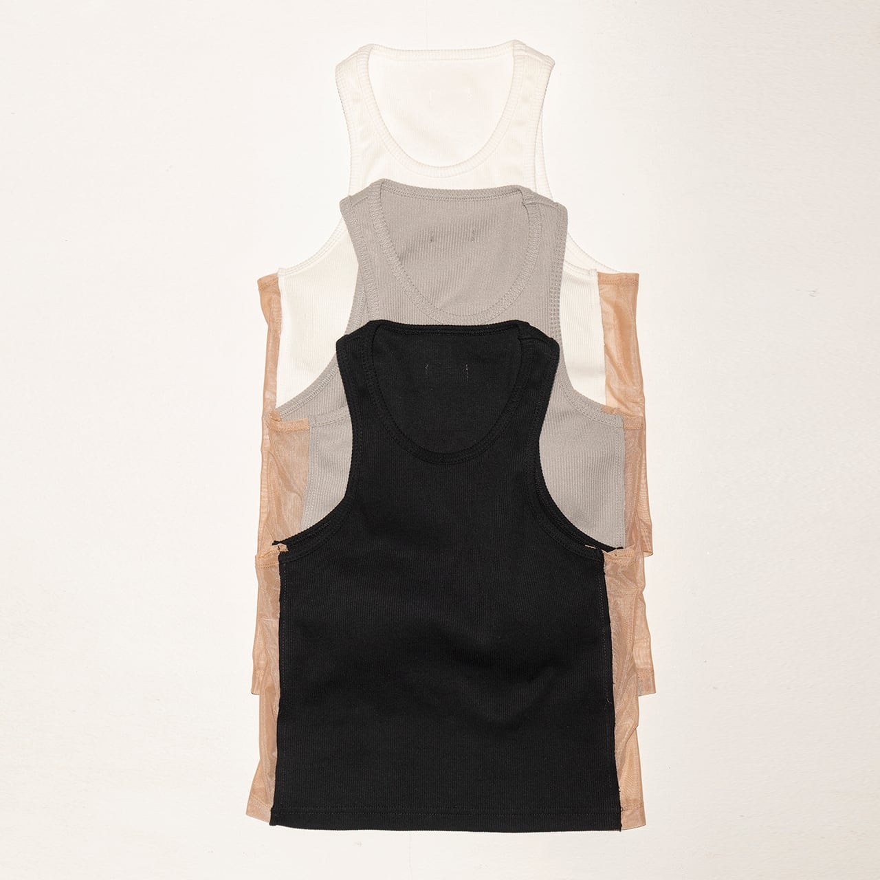 一見ベーシックでありながら、視覚に働きかけるディテールを加えたリブタンク。