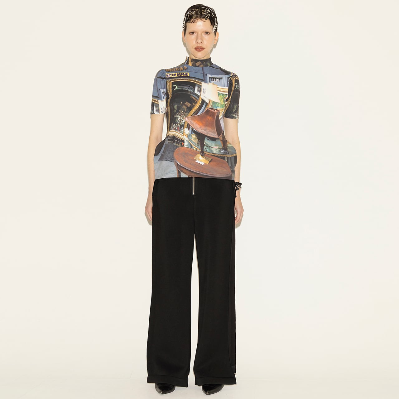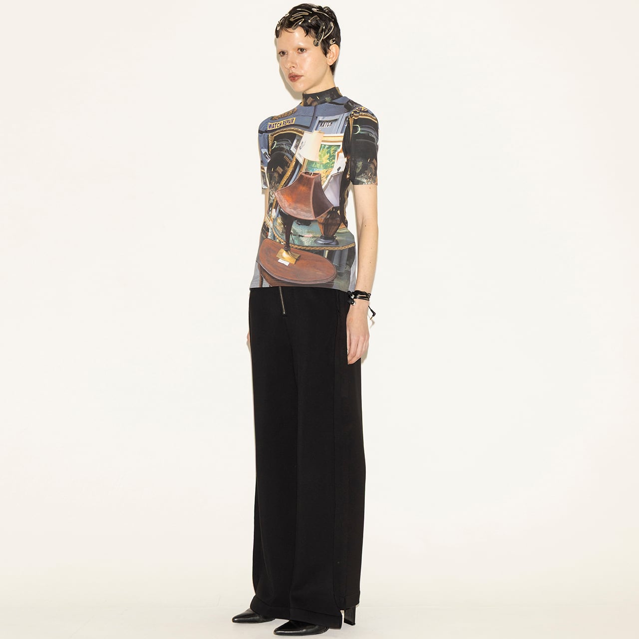 視覚と構造の両面から“歪み”を描き出す、存在感のある一着。