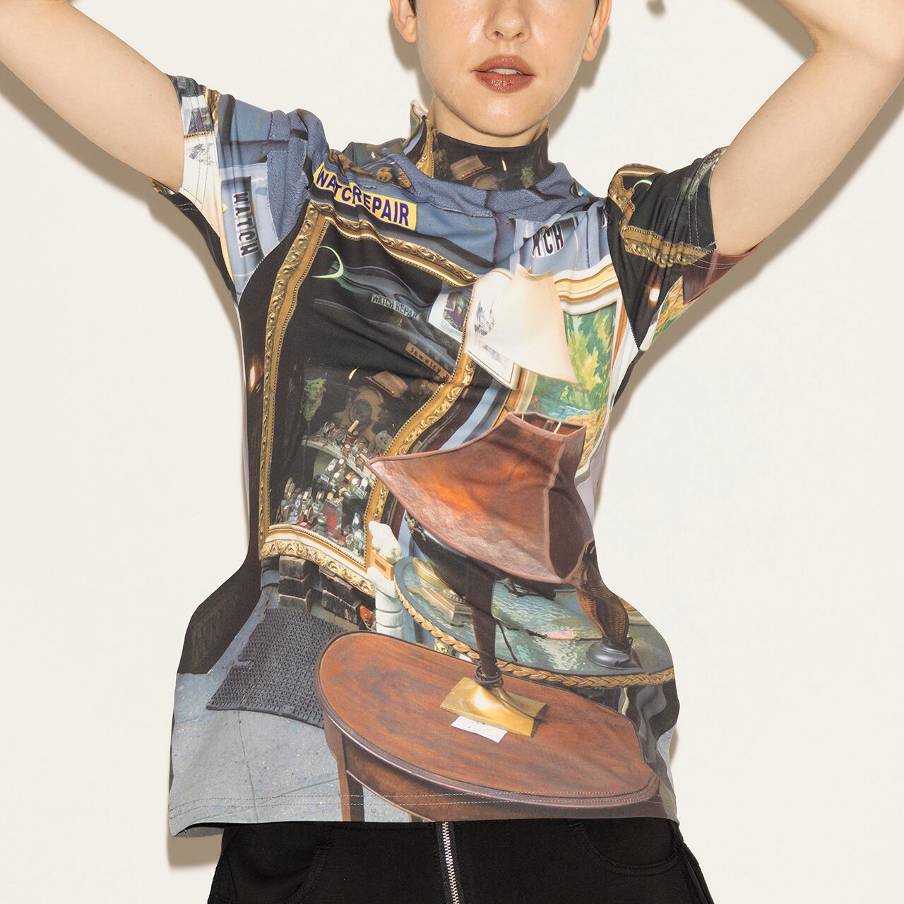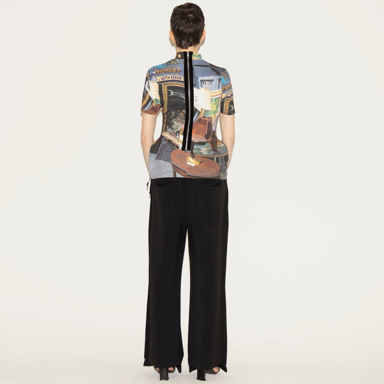時空の歪みを思わせるグラフィックを全面に施したコンセプトを象徴する一着。