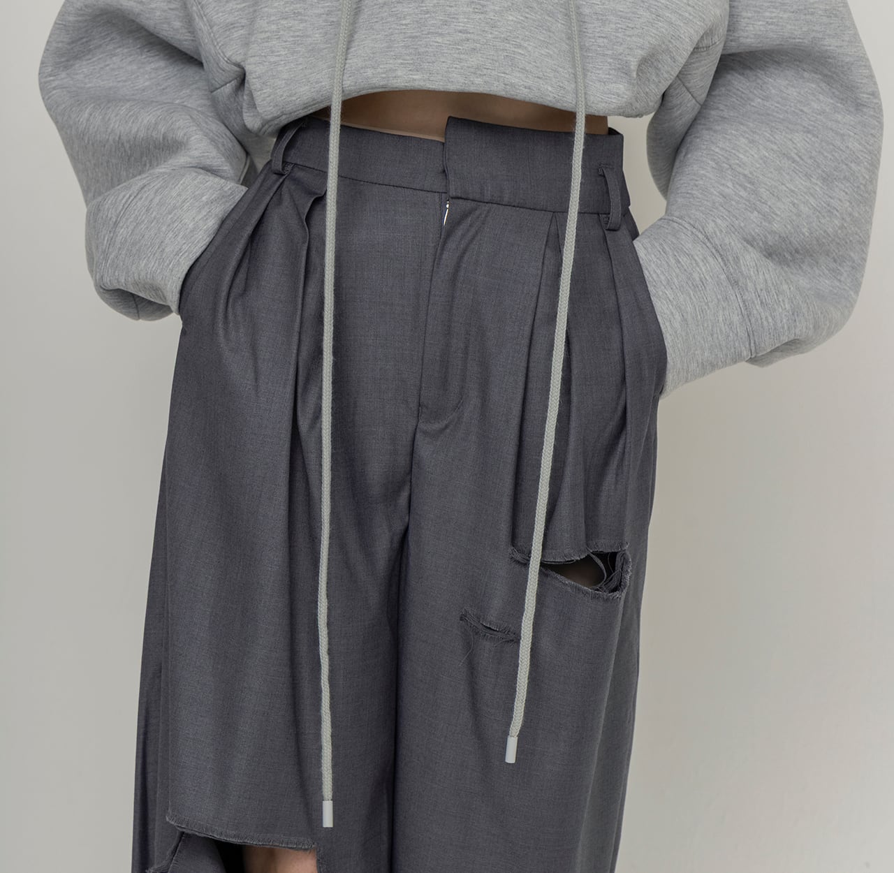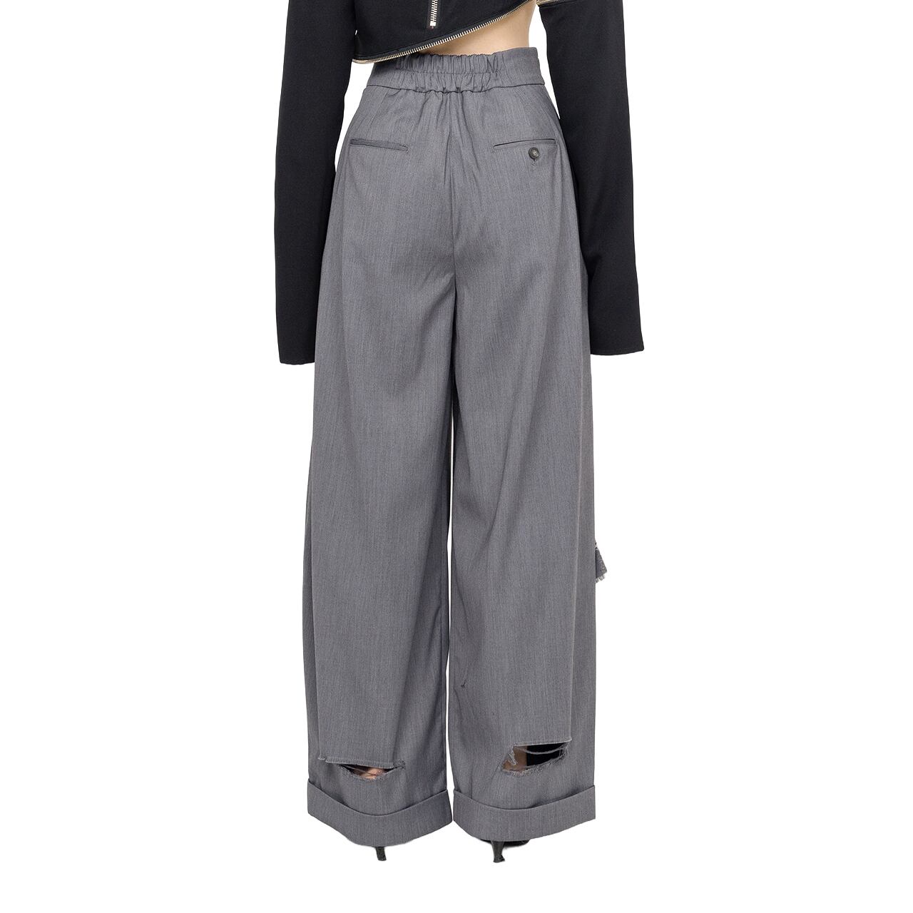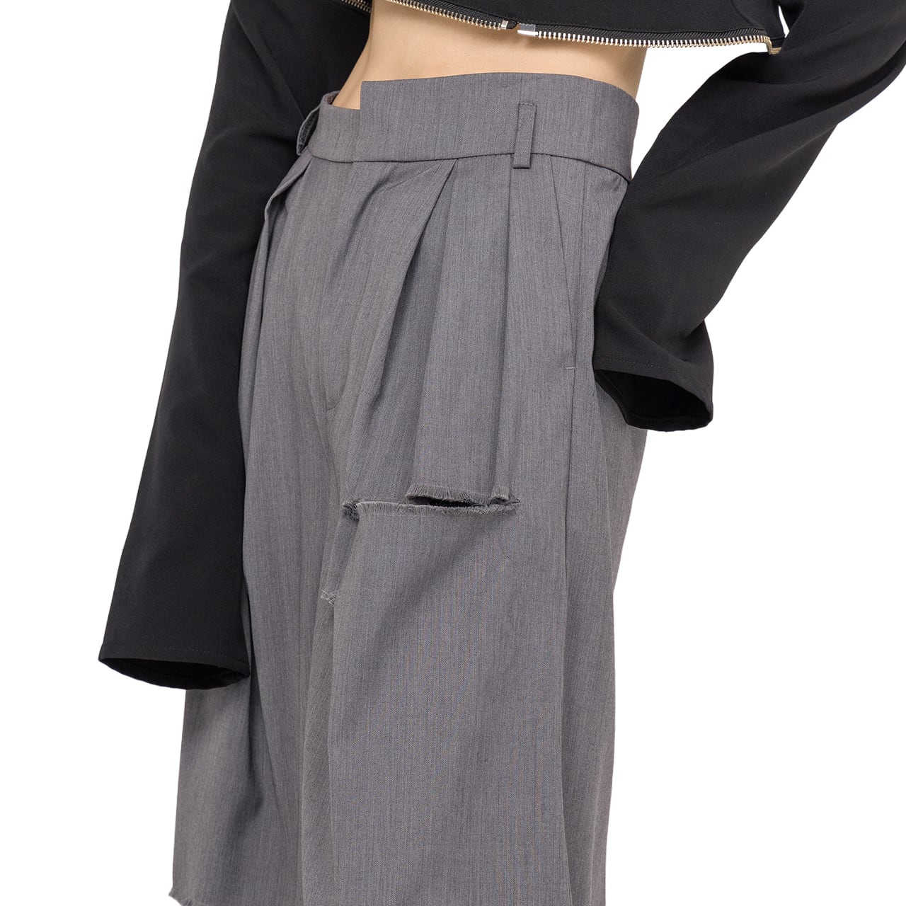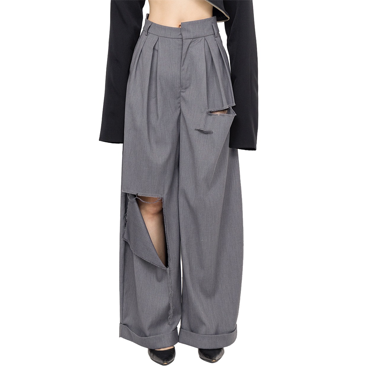 DAMAGED TUCK WIDE PANTS