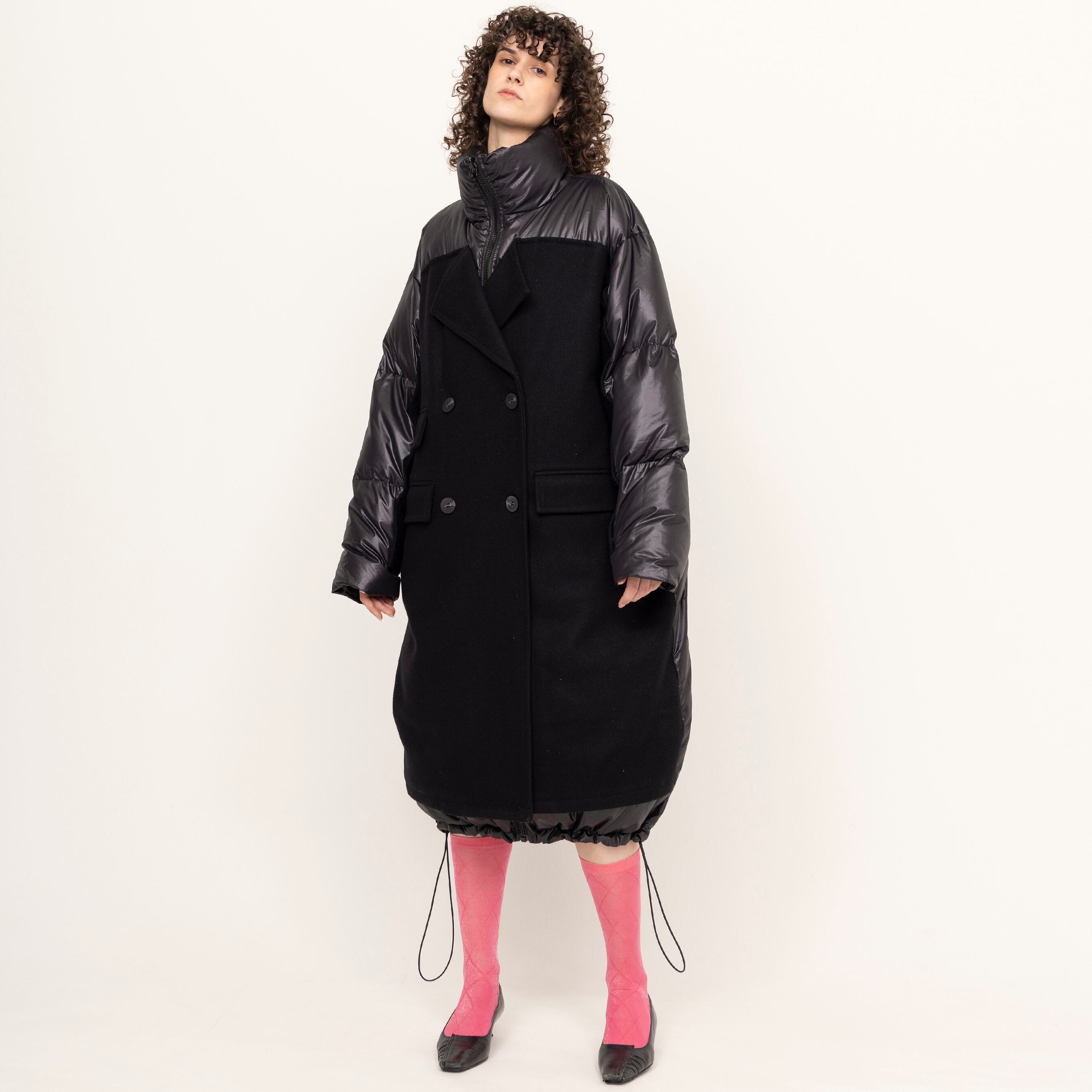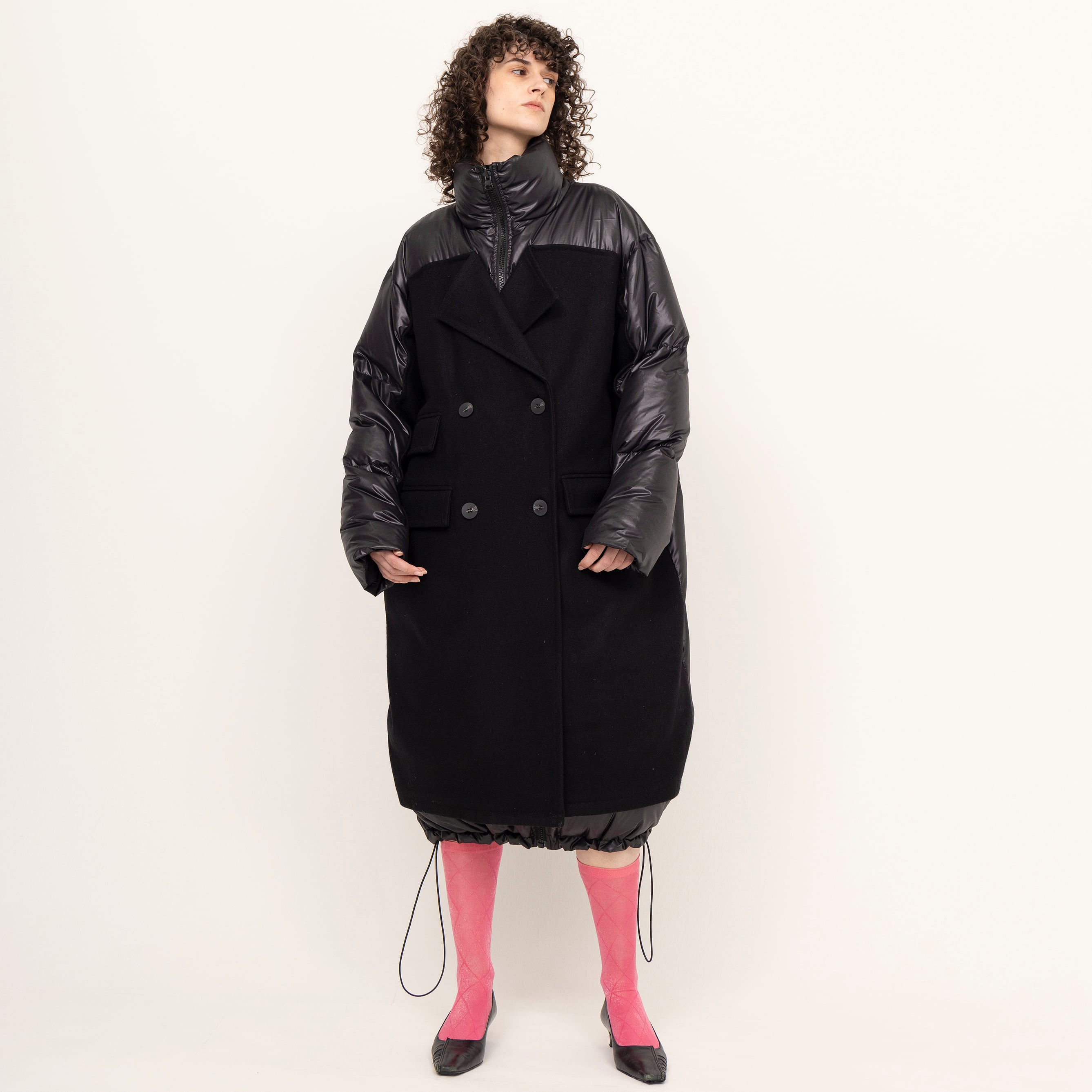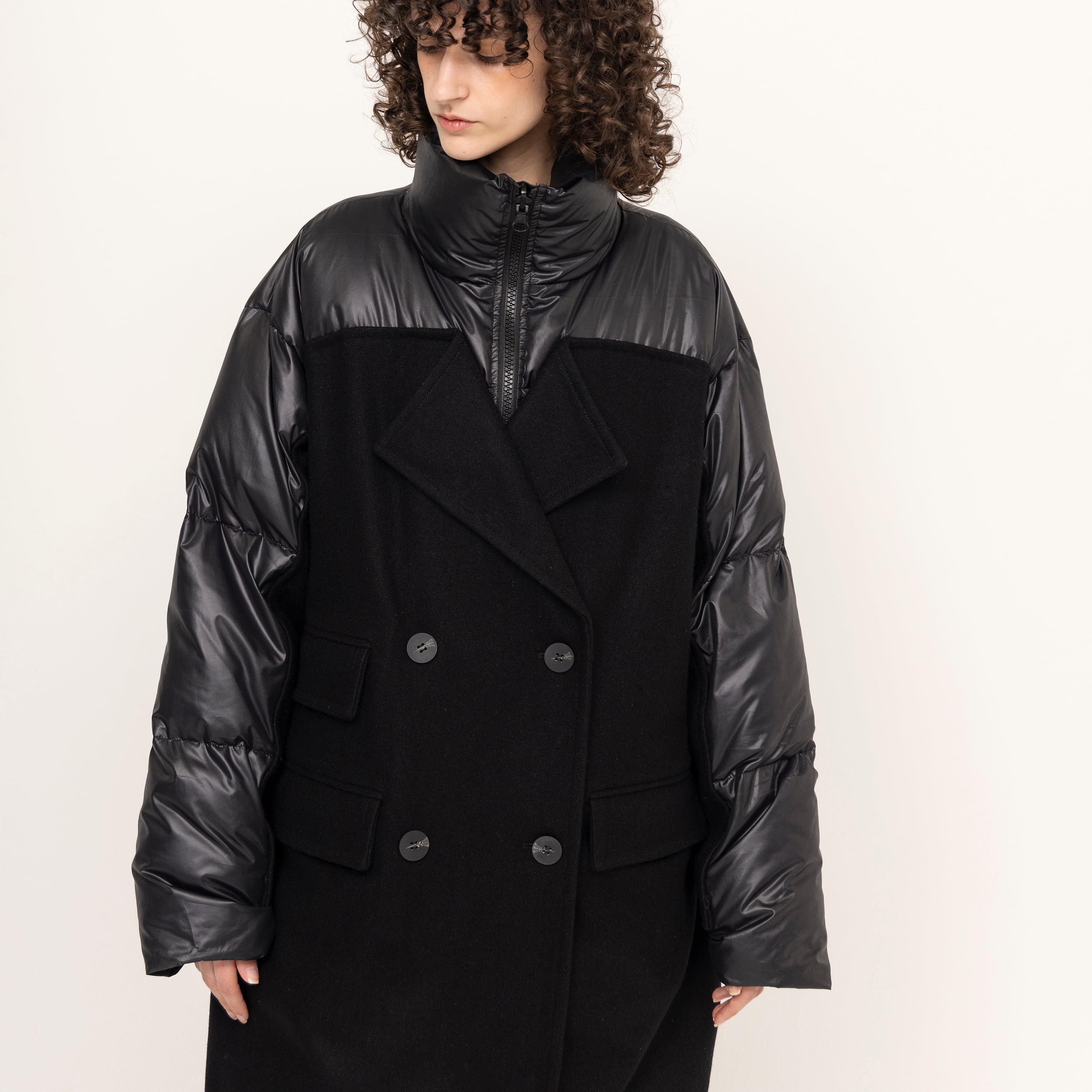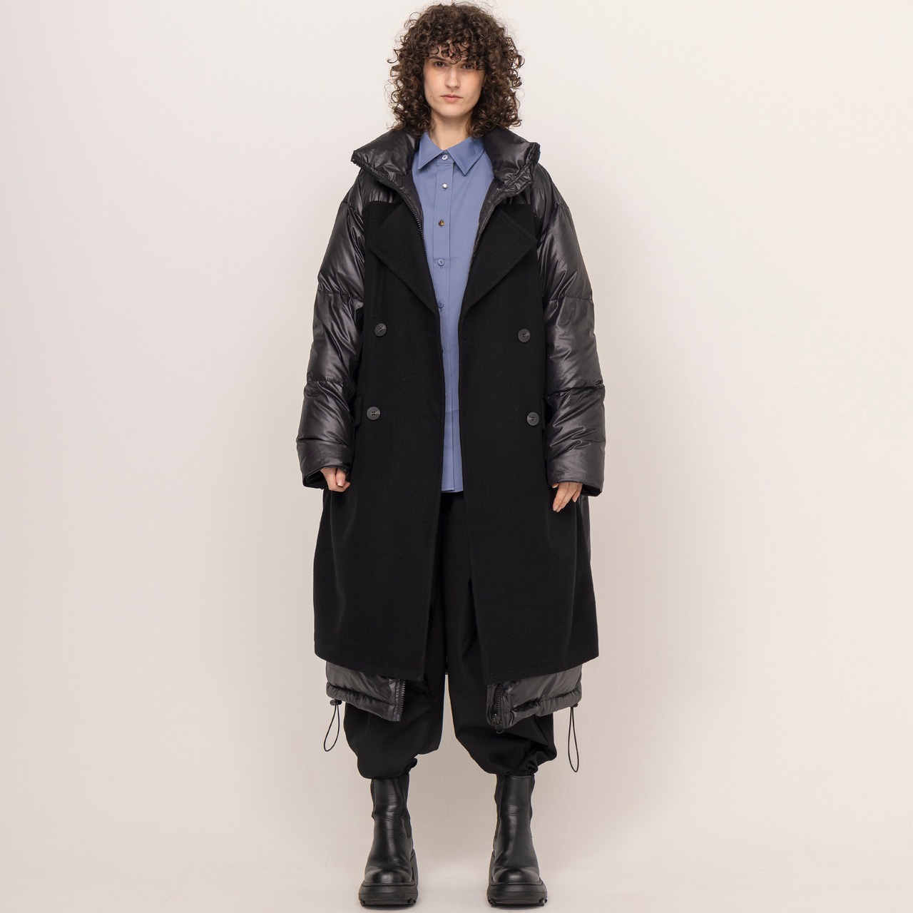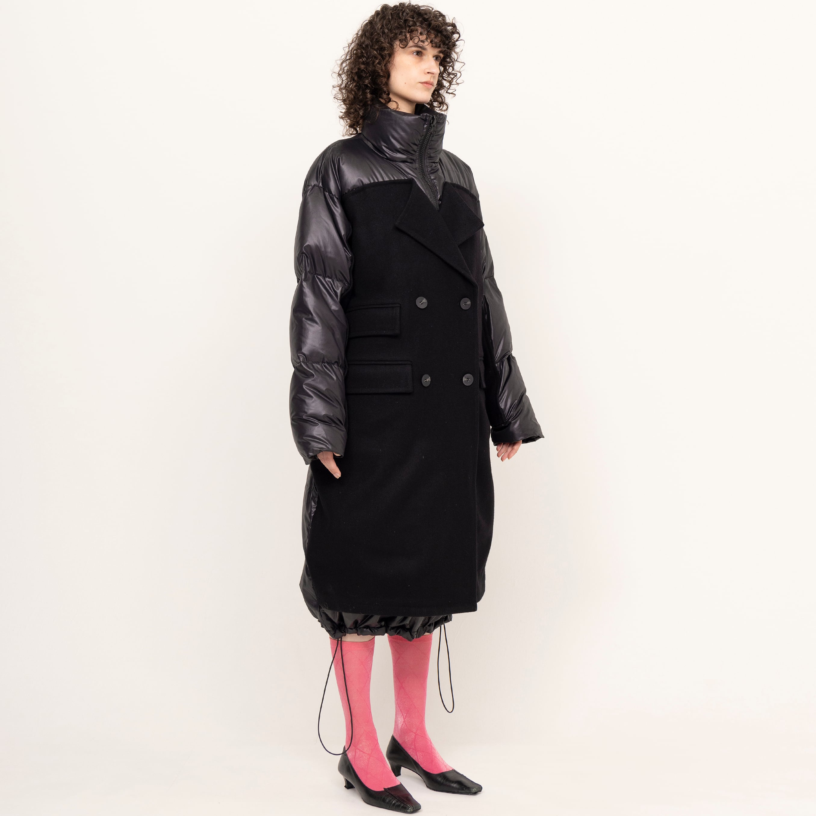 チェスターコートの構築的なディテールを融合させたロングダウンコート。